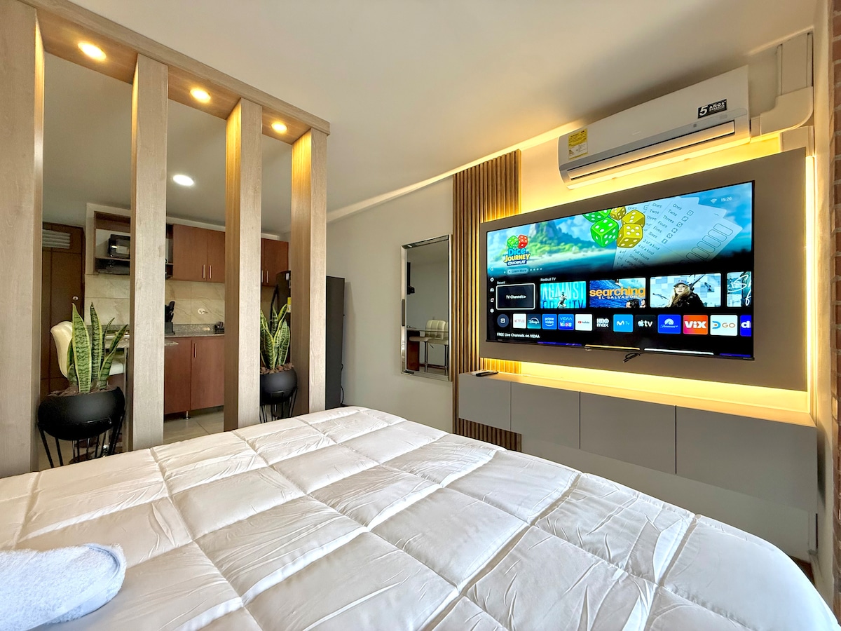 Discover the ultimate modern studio experience! Our stylish 50m² space boasts a balcony with nature views. Stay connected with our 300 MG stable wifi for working and enjoy your favorite shows on the smart TV. We have king size bed and washer. 24/7 Check in and security Pool and Gym in the building *Zero tolerance against sexual tourism. *Please see our house rules. * If you are Colombian you must pay IVA 19% additional.
