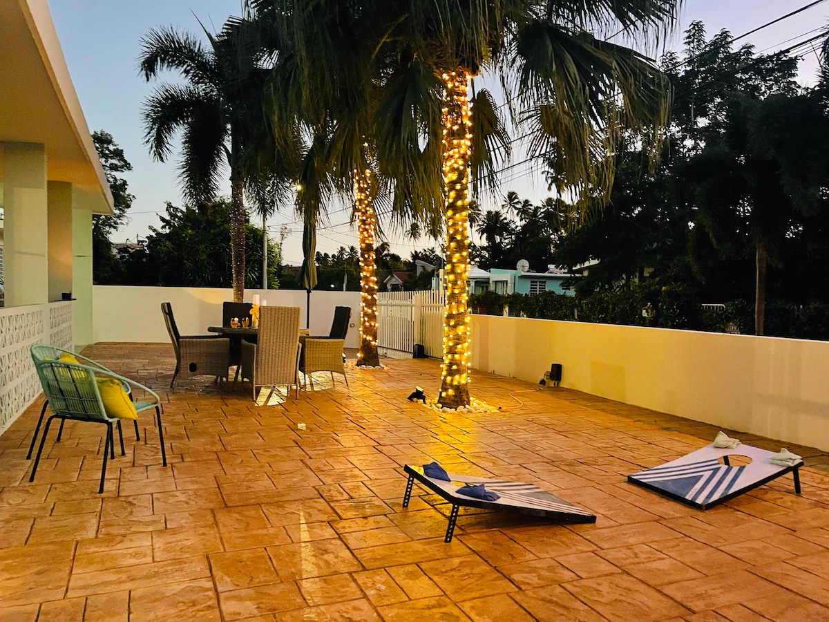 Enjoy this newly renovated home. With (3) bedrooms, (2) full baths, a full kitchen, dining room, outdoor space to BBQ/ lounge, and an entertainment area with large Smart TV, it will not disappoint! The house has plenty of a/c, high speed wifi, and parking. Centrally Located! 2 min- Aguada beaches/restaurants 5 min- Downtown Aguada/ Rincon 10 min - Downtown Rincon/beaches 20 min- Las Cascadas water park 20 min - Aguadilla Downtown and Famous Crashboat Beach! 25 min - airport (BQN)