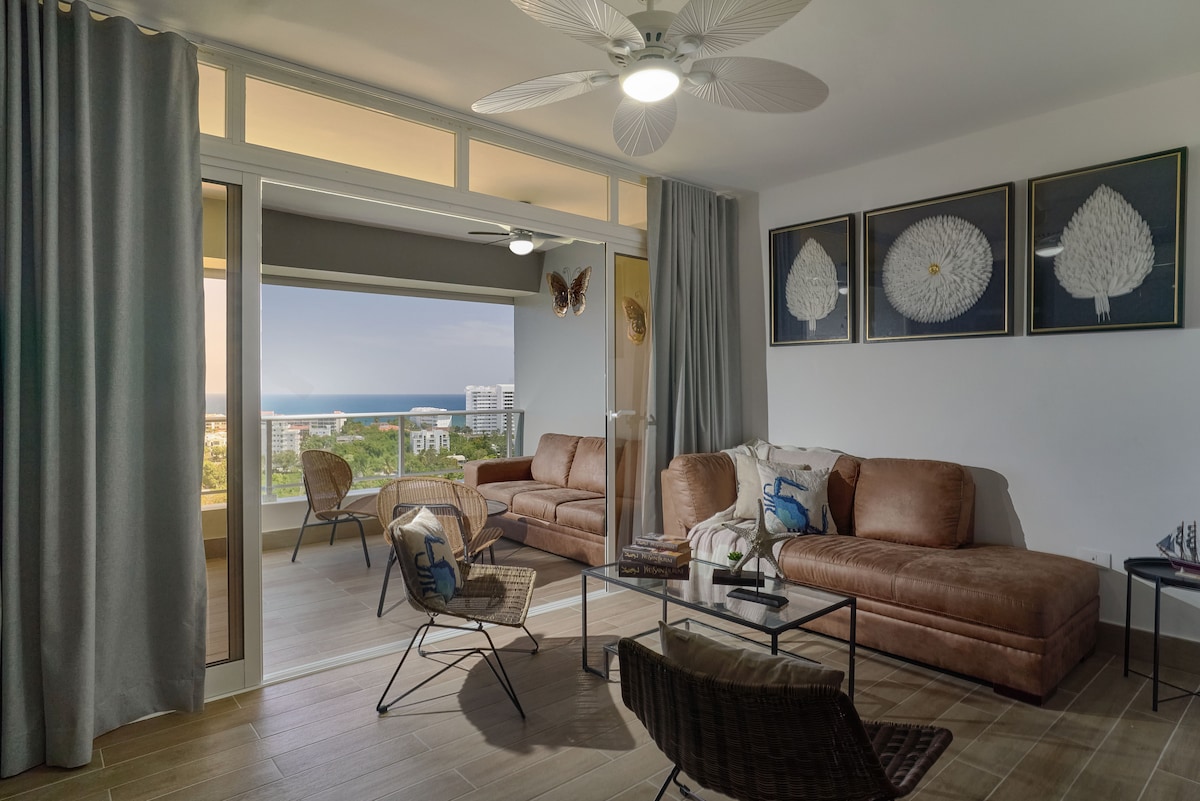 Stay in a private apartment as comfy and nice as a luxury hotel. Discover peace and tranquility in this apartment! This is a three bedroom apartment with simple and peaceful colors and modern furnishings. Each space with AC for an spectacular retreat, 3 baths, TV room and a huge balcony with an spectacular view. Includes fully equipped kitchen & Washer / Dryer. WIFI Includes 1 Parking. Located at Marbella in Juan Dolio.