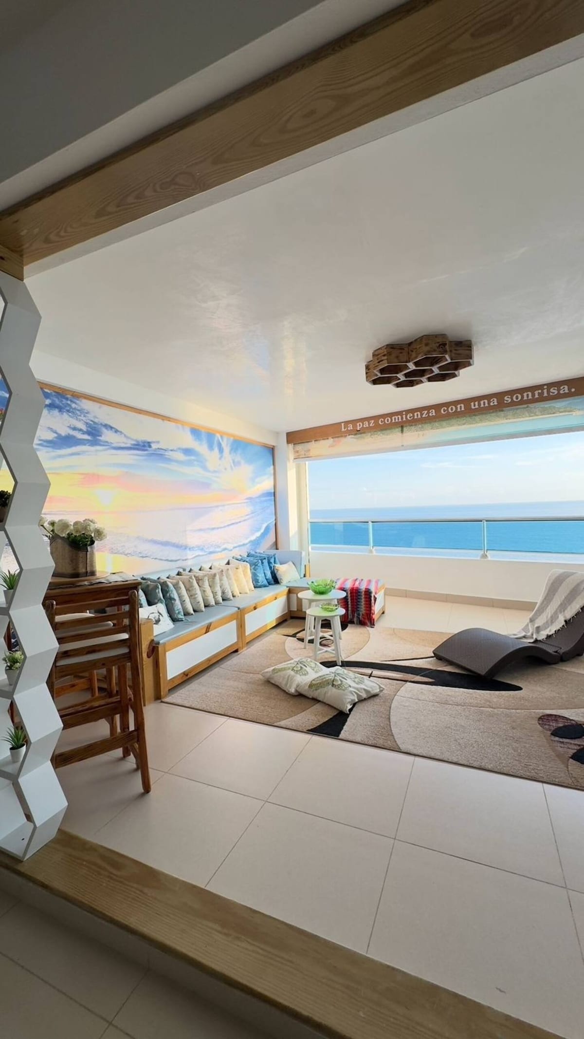 Espacioso, cuidadosamente decorado y muy iluminado, como una burbuja flotando en el inmenso Mar Caribe brindandote una sension de paz y relajacion en todos los detalles y colores que se coomplementa por todas las comodidades que lo componen. Tiene una vista panoramica de 180 grados de Juan Dolio y sus espectaculares atardeceres de colores brillantes que son un espectaculo para disfrutar en familia y amigos, con la arena en tus pies o las brisas caribeñas en las alturas del piso 19.