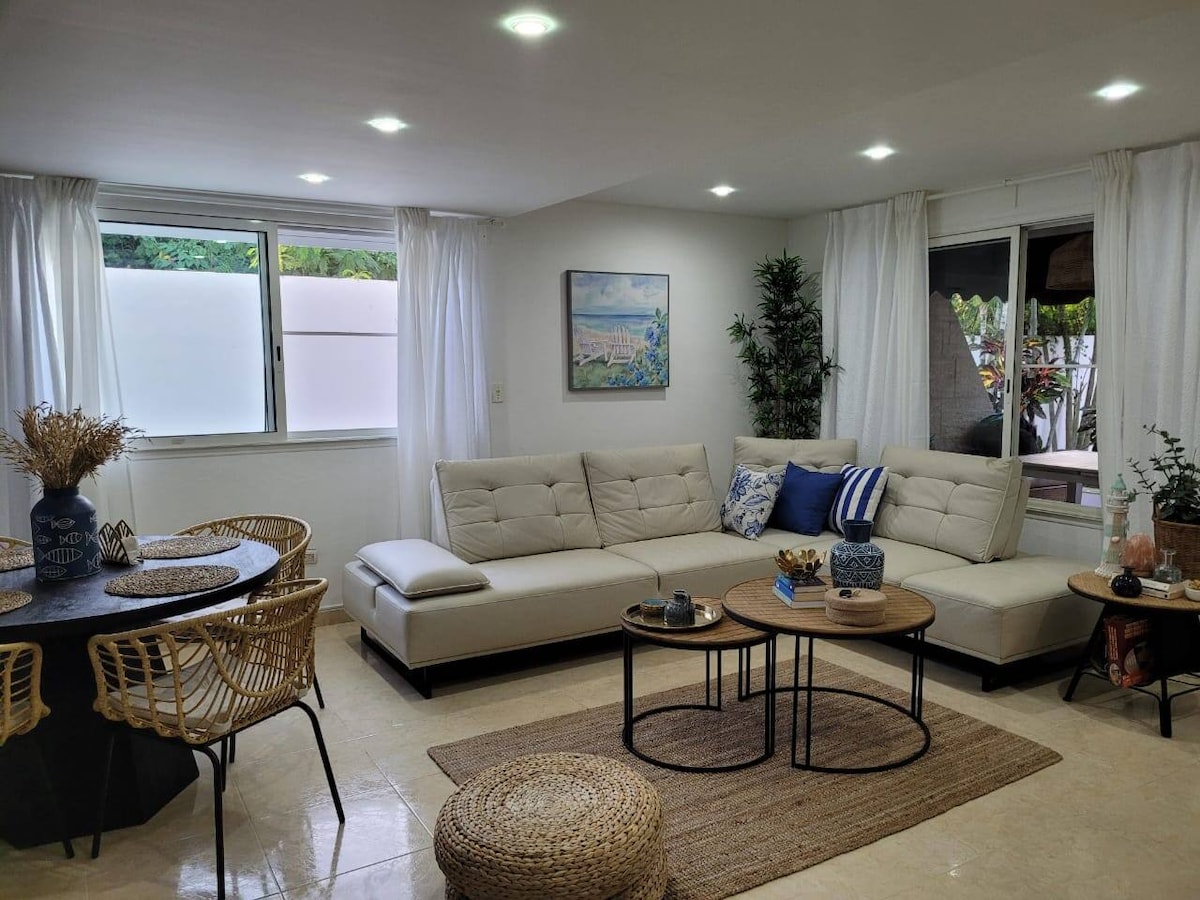 Enjoy this charming two-story villa with two bedrooms, two bathrooms and a sofa bed. Just a few meters from the beach, like 500 MT, in the exclusive area of Boca Chica, a few steps from the best Restaurants: Boca Marina, St Tropez, Neptuno and Pelicano. Enjoy a cozy atmosphere, a finely furnished atmosphere for you and your family to have a magnificent experience. All Guest need to send Id prior to arrival and show it at the security for access. If not ID no entry.