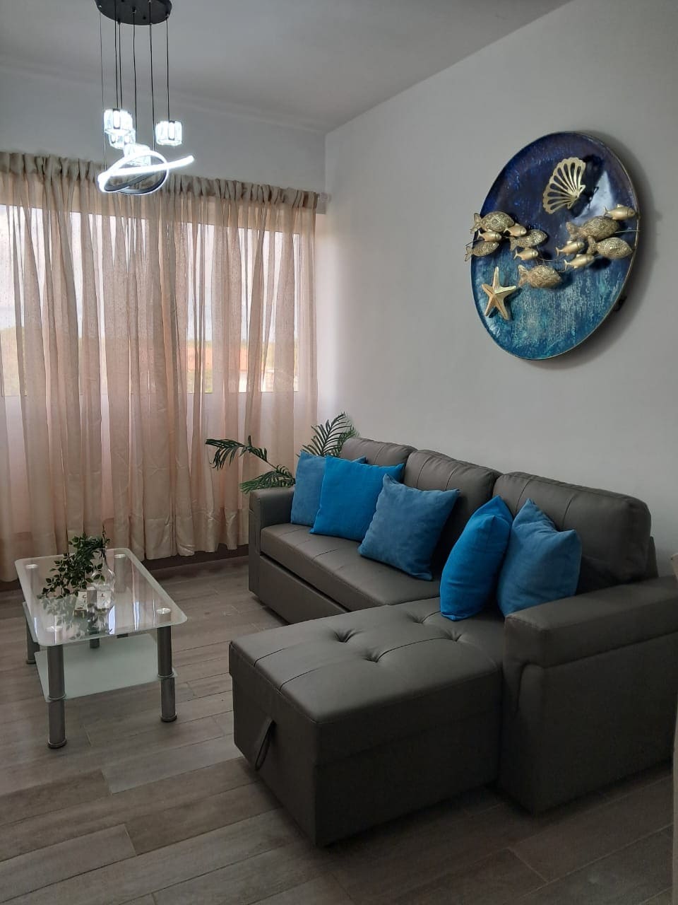 Un apartamento full equipado en la zona de Juan Dolio, a solo 20 minutos del Aeropuerto, con vista a la playa, cocina full equipada, 2 BD, 1 cama King Size, 2 camas full Size, colchones back care, aire central, 2 tv de 65 y 55”, streaming, netflix, wifi, lavadora, secadora, shutters, malla de seguridad en el balcon, 2 ascensores, gimnasio, piscina adultos,2 jacuzzis, piscina niños, BBQ, salón con billar, dominó, fútbol de mesa, playground de niños, terraza, parqueos y fabulosas actividades.