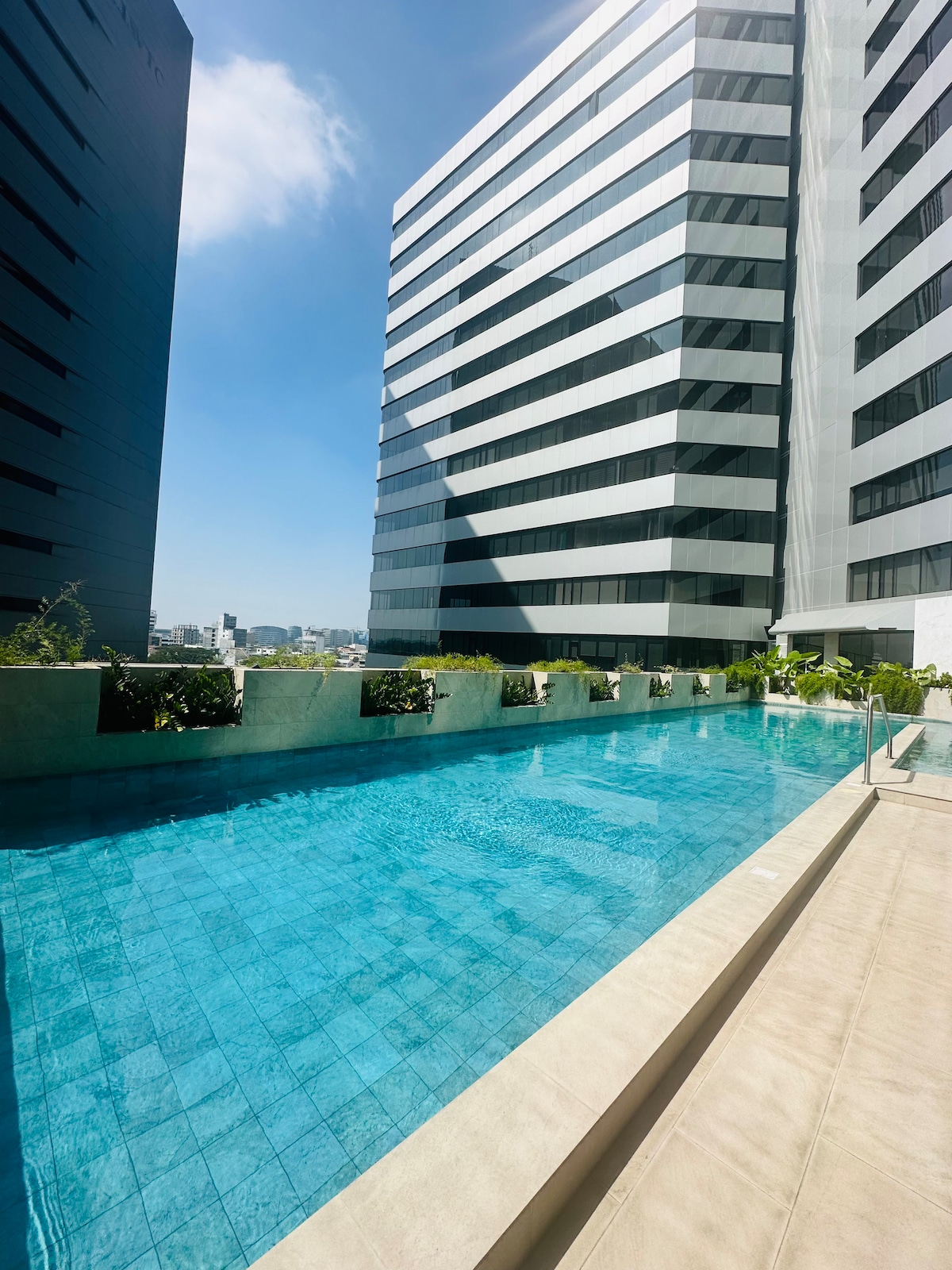 Disfruta una estadía de lujo en este elegante dpto de 2 dormitorios, con una vista luminosa de Guayaquil. Ubicado en la exclusiva Torre Millenium, cerca de los mejores malls, restaurants y más atracciones, una zona estratégica en el corazón de la ciudad. Vive con total comfort: seguridad 24/7, parqueo gratuito, área social, piscina, Gym, sala de cine. Perfecto para quien busca estilo, comodidad y ubicación premium en un solo lugar. ¡Una maravillosa experiencia te espera en nuestro alojamiento!