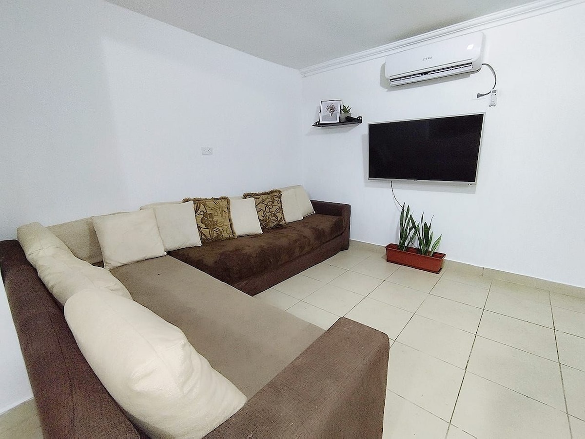 Relájate en este alojamiento donde la tranquilidad se respira te sentirás en tu hogar. Silencioso y cómodo, todo lo q necesitas para la estadía perfecta, descanso, trabajo o viaje en familia. -Capacidad de 1 a 4 personas -2 habitaciones con AC,2 baños,escritorio, Wifi, TV smart, netflix, tv cable, sala, comedor, cocina, lavadora -Seguridad 24h -Parqueo gratuito, canchas, piscinas y parques -Cerca de restaurantes, farmacias, gimnasio, supermercados y más * Piscina Martes. a dom. de 9am a 5pm