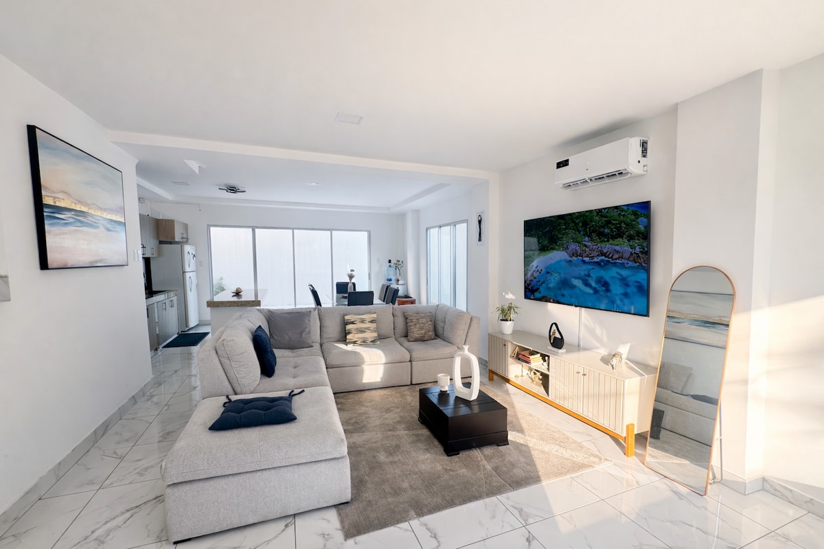 Spacious and comfortable home just 20 min from Guayaquil’s center. Sleeps 6 with 4 beds and 1 sofa bed, A/C in all rooms, and a fully equipped kitchen. Enjoy a large backyard, great for relaxing or entertaining. Located in a quiet, family-friendly gated community with 24/7 security. Free and save parking for up to 3 cars. Ideal for families or business travelers looking for comfort, safety, and convenience.