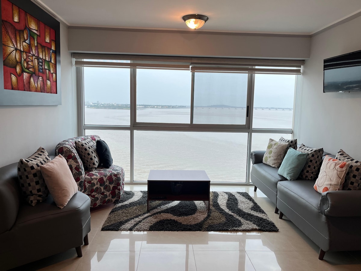 Beautiful apartment in the heart of Guayaquil, its location offers you the proximity to the entire tourist area of this city. You will wake up with a panoramic view of the magnificent Guayas river. Full furnished and close to the airport.