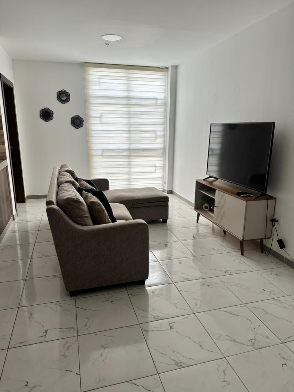 Elegant and modern apartment in building complex La Vista Towers, perfect for executive or family travels. The complex has a gated entrance, 24/7 security and privacy are guaranteed. Magnetic card is needed to access common areas, jacuzzi and rooftop. Located near the airport and on the way to any area in the city. 3 minds away from La Rotonda, City Mall, movie theaters and 10 minutes away from the airport. The apartment is new and comes fully furnished.