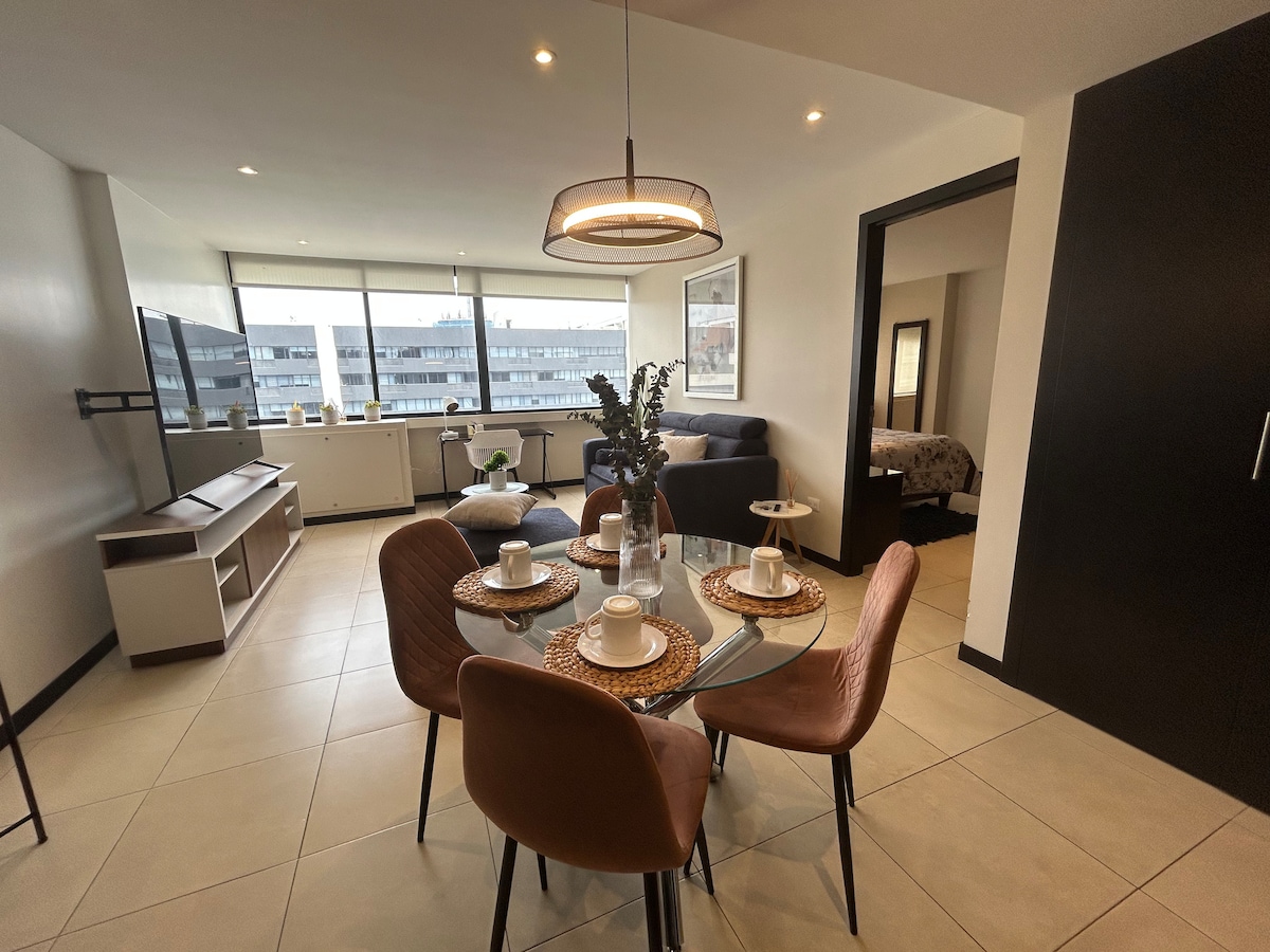 Suite full amoblada y renovada ideal para extranjeros y ejecutivos. Acabados de lujo. Cama queen size, sofá cama, smart-tv en sala y habitacion, wi-fi. Queda ubicado en una las zonas mas prestigiosas y a 3 minutos del aeropuerto. Cuenta con recepción disponible 24h. Cerca de cines, bancos, restaurantes, hoteles, supermercados, hospital y centros comerciales. Tiene lavadora y secadora, cocina eléctrica, refrigeradora, microondas, cafetera, tostadora y utensilios de cocina.
