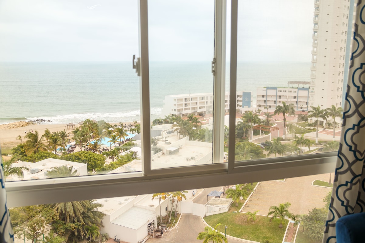 Cozy 2-room suite with a panoramic view of the Guayaquil Lighthouse. It features a living room with a sofa bed (sleeps 2), a bedroom with a double bed, and a private bathroom (only one bathroom, shared if the sofa bed is used). Ideal for 2 guests, with capacity for up to 4. Located in the best residential and commercial area, close to the airport, bus terminal, restaurants, and supermarkets, with 24/7 security and concierge service. Swimming pool Jacuzzi Sauna Fully equipped gym