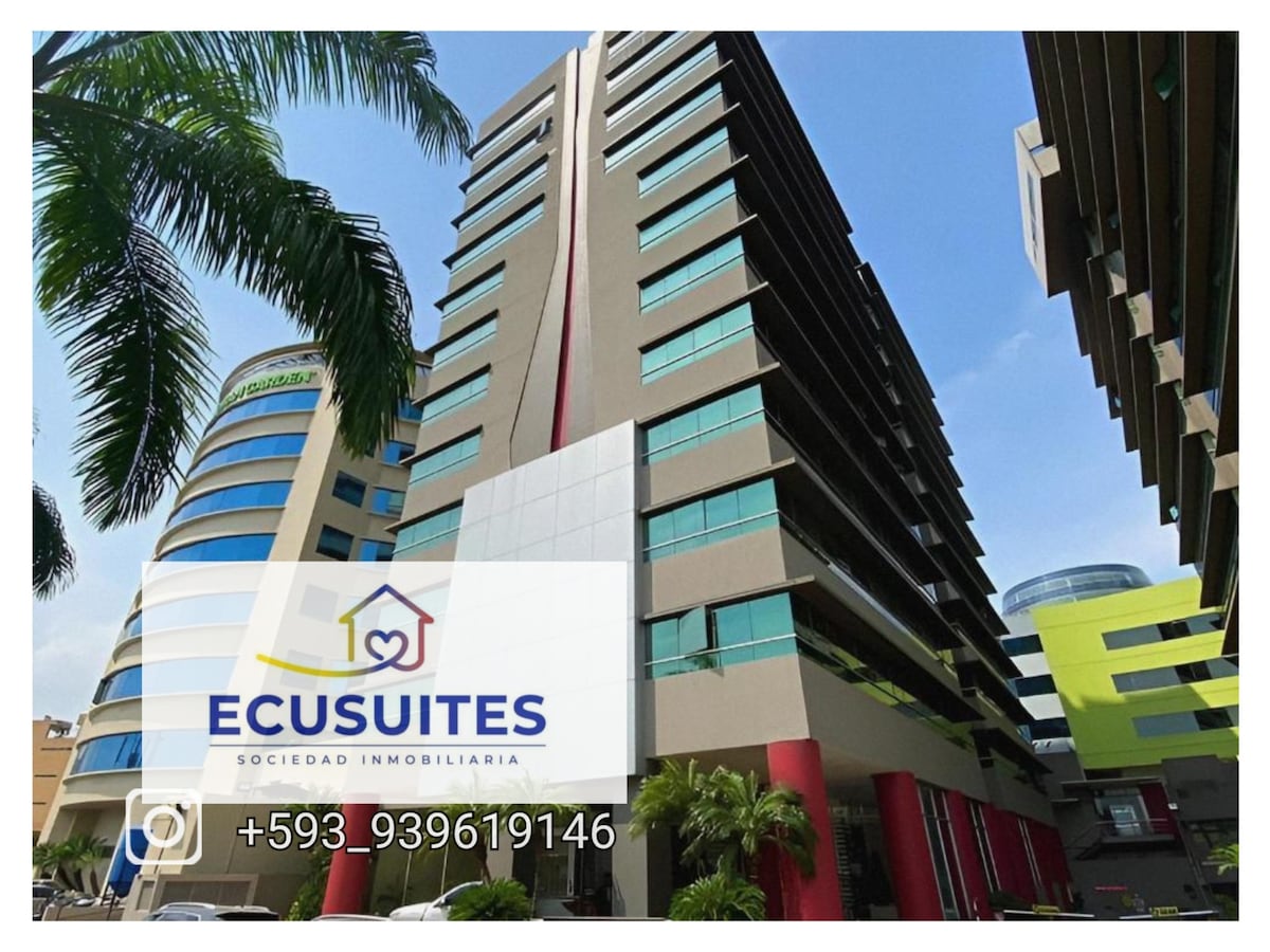 Suit de un ambiente bien equipada para que tu estadía sea placentera. Espacio nuevo, moderno y práctico. Cerca de C.C. Riocentro Norte, Mall del Río y CityMall Ubicada en Av principal con acceso directo al transporte público o si tienes vehículo puedes estacionar al pie de la propiedad. Ideal para ejecutivos, extranjeros o pareja. Cerca de panaderias, tiendas y restaurantes. WIFI, NETFLIX, A/C, AGUA CALIENTE.