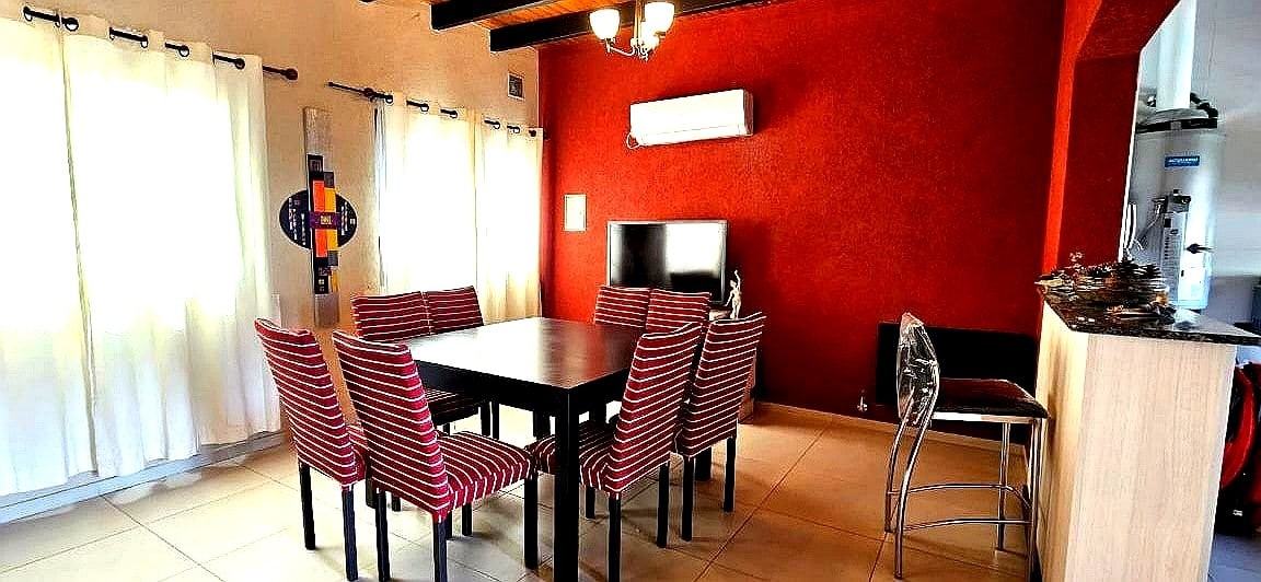 This cozy accommodation in a quiet and accessible neighborhood. Features: WiFi, TV, grill, parking for 2 cars, 3 bedrooms, a dining room for 6, fireplace, equipped kitchen and bathrooms. Patio with bar, grill and lighted pool. Steps away: cafes, restaurants, ice cream parlors, town square and gym. By car: close to Barraca Mall, Dorrego Mall, Chango Más, Av. Aristides, downtown and Chacras de Coria. Unbeatable location with all amenities within reach.