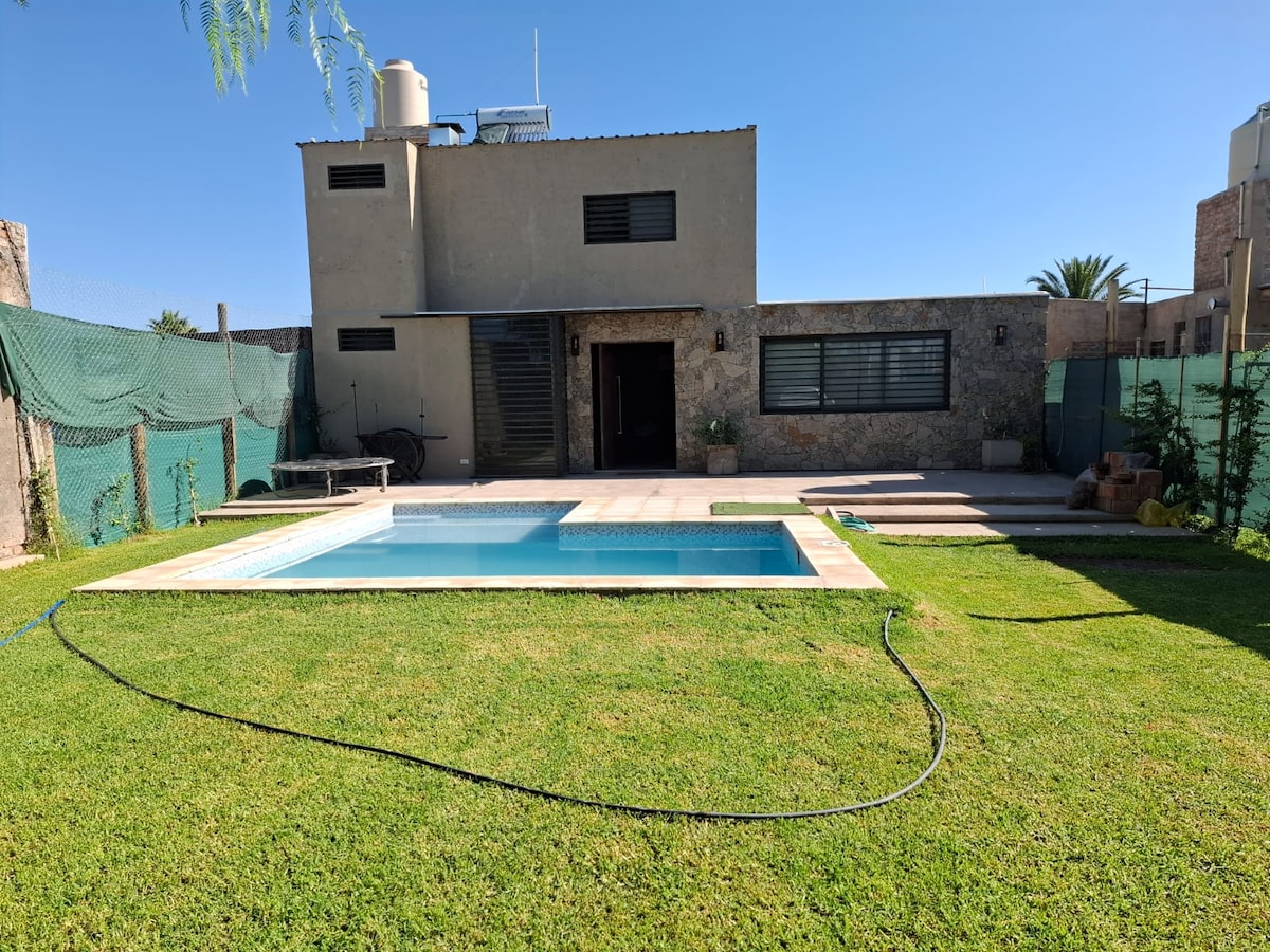 Disfrutá de nuestro acogedor alojamiento con piscina ubicado en barrio cerrado con seguridad las 24 hs. super tranquilo para venir a descansar, hacer negocios o disfrutar de tu familia con el plus de nuestra piscina para relajarte y hacer placentero el calor del verano Muy bien ubicado a 8 minutos del centro de Mendoza, 4 minutos del aeropuerto , a 2 minutos de hipermercado. En un entorno de viñas , árboles centenarios que te introducen en los mágicos viñedos y vinos de nuestra tierra.