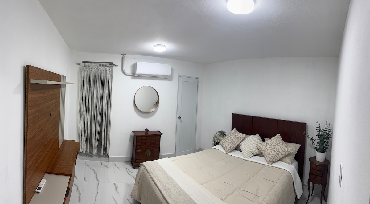 Apartamento estudio ubicado a pasos del expreso, plaza las Americas, detrás del restaurante Mexicano Aurorita, panaderías, pizzeria, gasolineras, cajeros atm, paradas de transporte público, 15 min del Choliseo (en auto). Recién remodelado. Entrada independiente y estacionamiento en el frente de la propiedad.