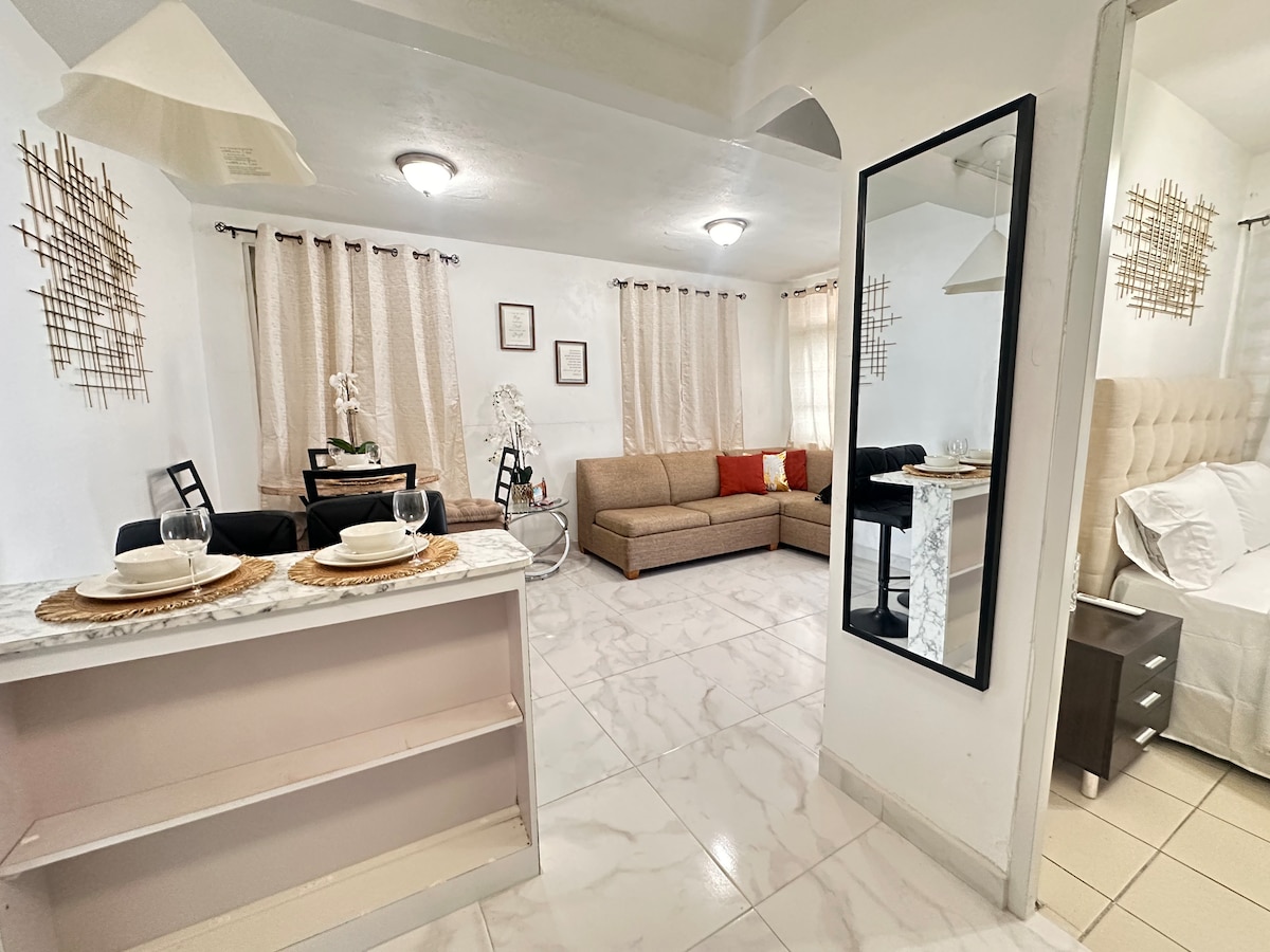 ¡Bienvenidos a Aquí en el Paraíso Apartment! Este encantador apartamento está diseñado para parejas o viajeros que buscan una escapada o una aventura en la vibrante ciudad de San Juan. Disfruta de un ambiente íntimo y relajante, con una decoración moderna y acogedora. Está ubicado céntricamente a minutos del Coliseo de PR, el Viejo San Juan, playas, centros comerciales y a pasos del Bosque San Patricio, el único bosque urbano en San Juan. Los Esperamos 🙌