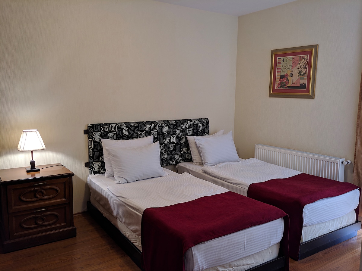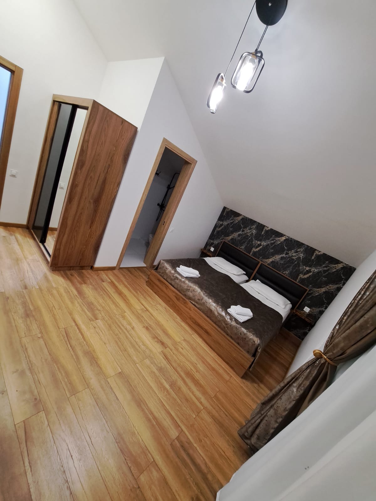 A comfortable hotel with a magnificent view of the mountains of the Aragava Gorge. The hotel is located in the center of Gudauri behind the police building. The location of the nearest pharmacy, hospital, SPAR supermarket, ATMs is 200 meters. The distance to the 1st ski lift is 550 meters. Transfer to the ski lift and back is included in the price(winter season). The hotel has 18 rooms and can accommodate up to 45 people. The hotel has a restaurant with cocktails and Georgian-European cuisine.