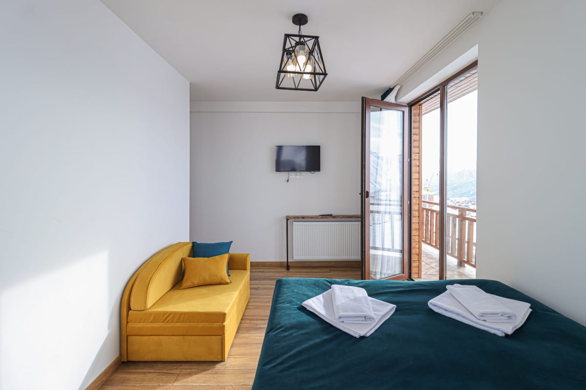 Hotel GoodAura is a cozy 4-star boutique hotel located in the centre of Gudauri, just a short walk from the ski lifts. It offers modern rooms with panoramic mountain views, a spa with sauna and jacuzzi, and a restaurant serving Georgian and European cuisine. Guests enjoy free Wi-Fi, breakfast, and a complimentary shuttle to the ski lifts, making it a comfortable and convenient choice for both ski holidays and year-round mountain stays.