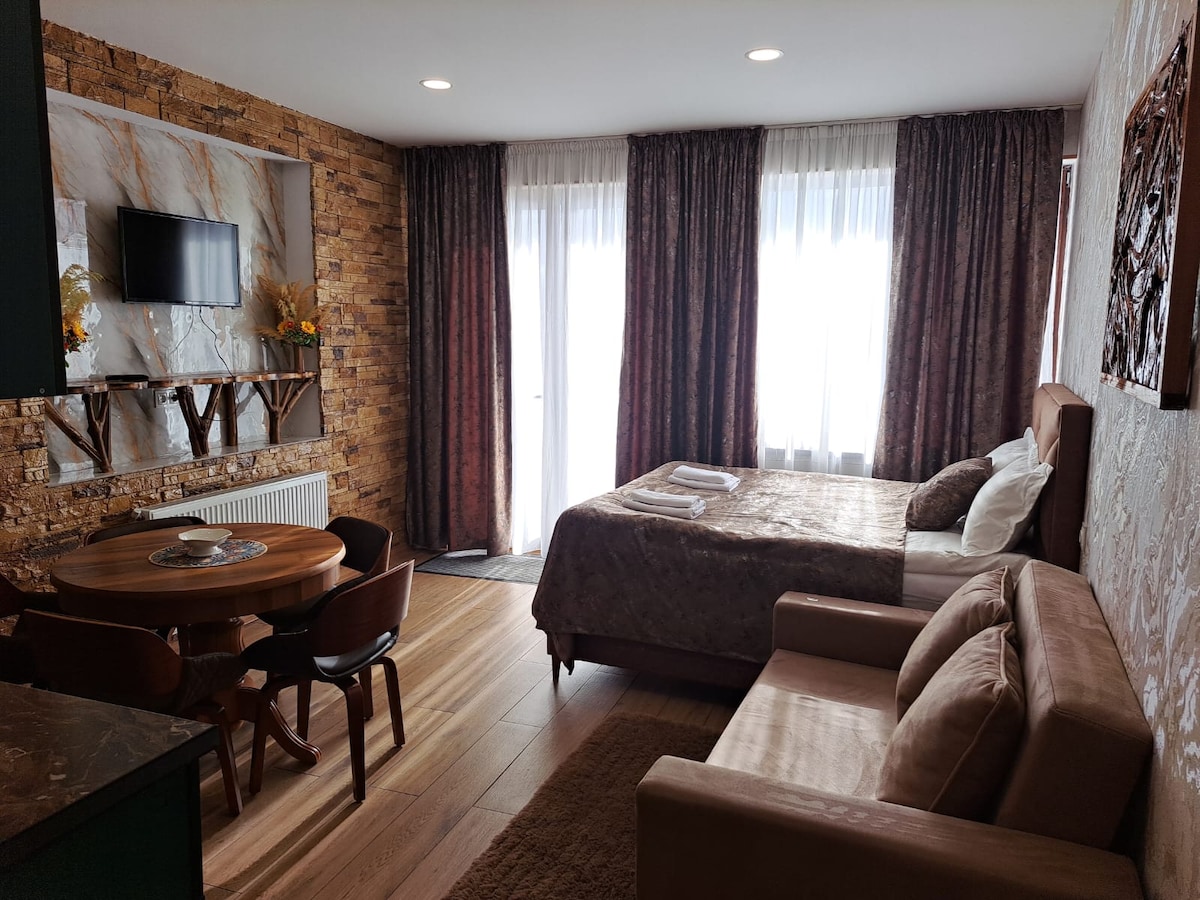 აპარტამენტი იდეალური მდებარეობით ახლოს საბაგიროებთან, რესტორნებთან და ზამთრისთვის საჭირო ყველა სხვა აქტივობასთან. Our cozy apartment in New Gudauri is now open for daily rentals for the new ski season! It offers an ideal location—just steps from ski lifts, restaurants, and all essential winter activities. The apartment is warm, modern, and fully equipped for a comfortable stay. Perfect for couples, friends, or families who want to enjoy Gudauri’s winter vibe.