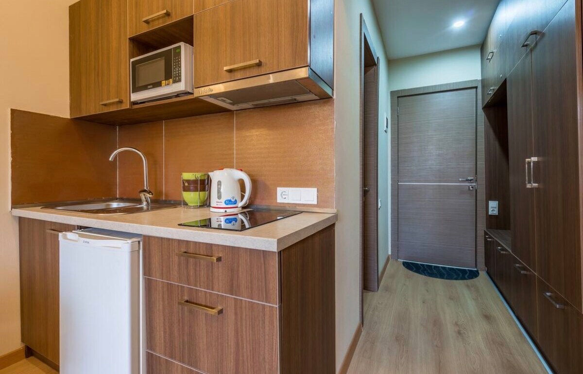 Apartment is in the center of Gudauri. Only few meters from Gondola ski lift (RedCo Loft2 Apt#357) It offers ski-to-door access with free Ski depot on the reception level. fully equipped kitchenette. Indoor pool and spa for additional fee as well as Casino are located in the neighborhood. Big supermarket, also couple of restaurants and bars are located in 50 meters from the apartment. RedCo also offers couple of well equipped outdoor playing grounds for kids.