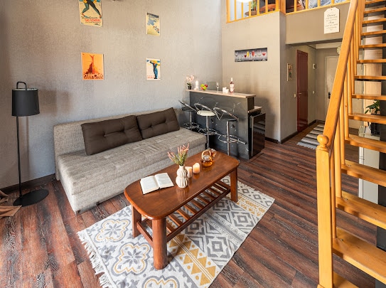 The room is located in the Gudauri Hotel Loft, a stylish and modern hotel in Gudauri. The guests can enjoy swimming pool, Jacuzzi and sauna (at extra cost). The hotel has a restaurant and 24-hour reception. The room is 25 m2 sq.m, has two single beds, one sofa bed and can accommodate up to 4 persons. The room has free wifi, TV and equipped kitchen. The location is particularly suitable for ski-lovers as it is located next to the ski track, has ski-to-door access.
