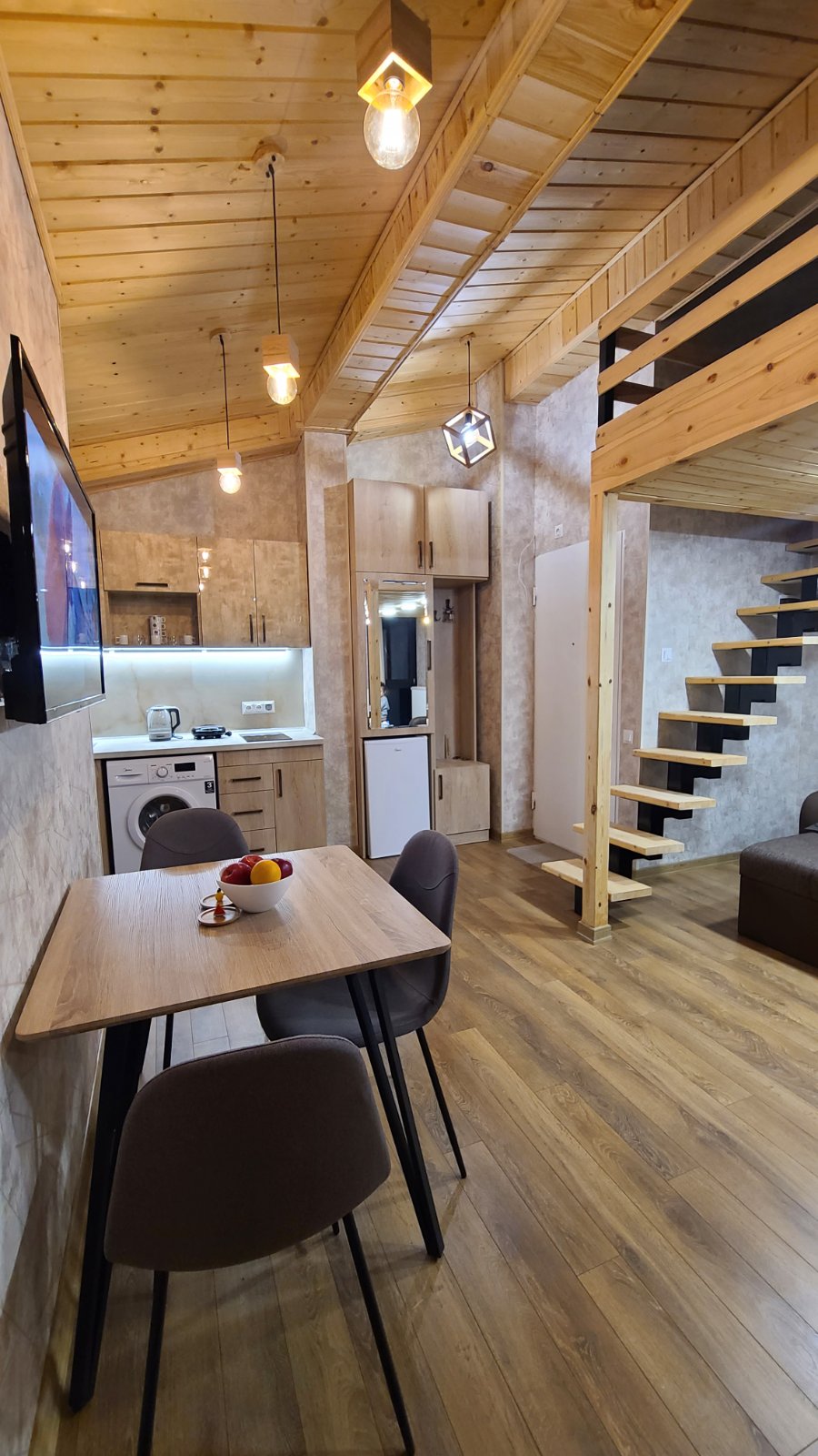 Alpinn 113 Apartment is set in New Gudauri in building Loft 1 and offers accommodation with ski-to-door access and free WiFi, a few steps from main ski lift 🚠 Gudauri 7 Gudaura. Apartment comes with 2 balcony with mountain views, Guest room with 52 inch flat Tv with satellite tv channels, a kitchenette with a microwave, electric stove, washing machine, fridge, kettle. Private bathroom, with all needed equipment's and own ski depot. This location is The best and most valued in whole Gudarui