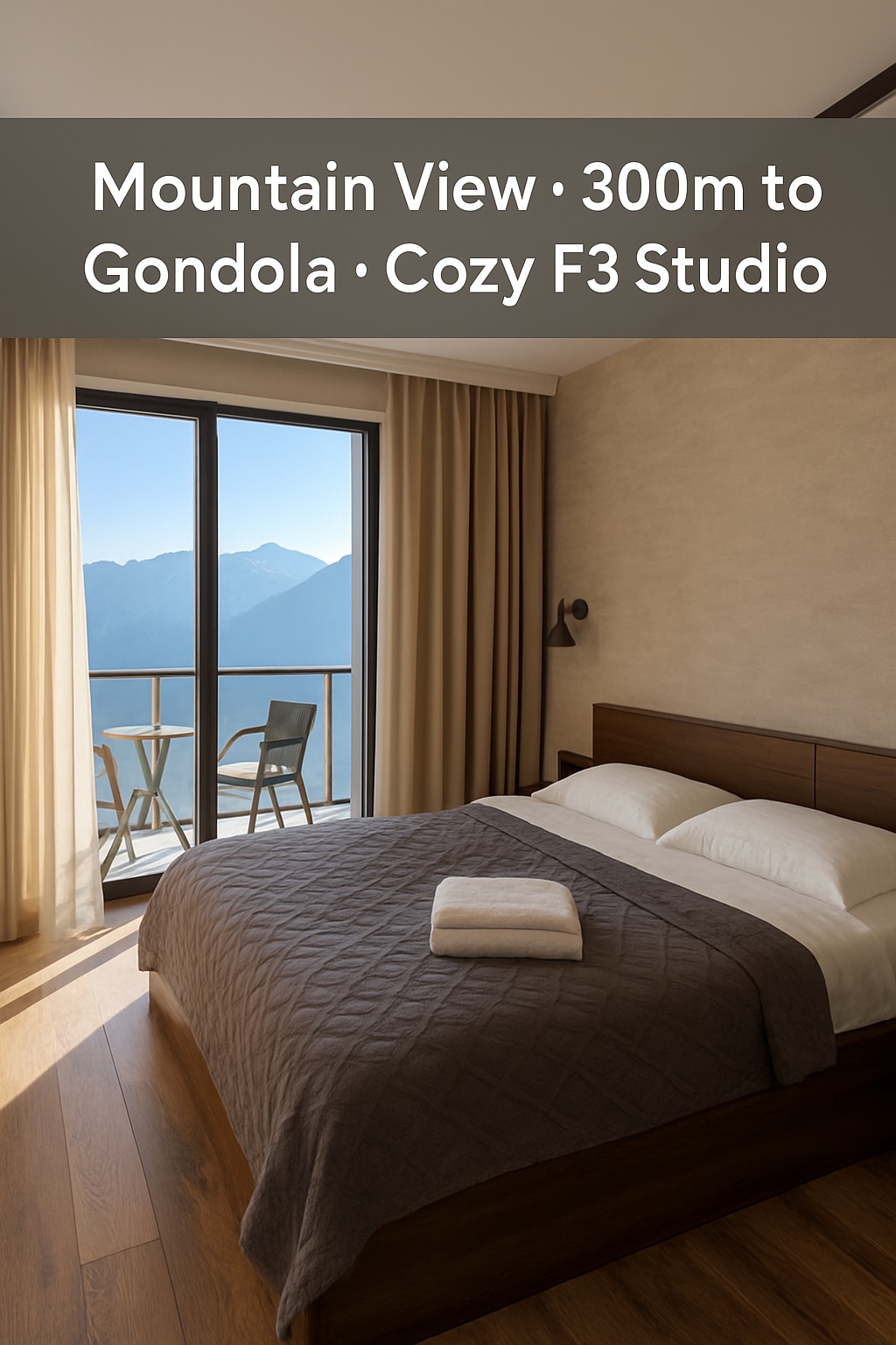 山景舒适公寓阳台加大双人床