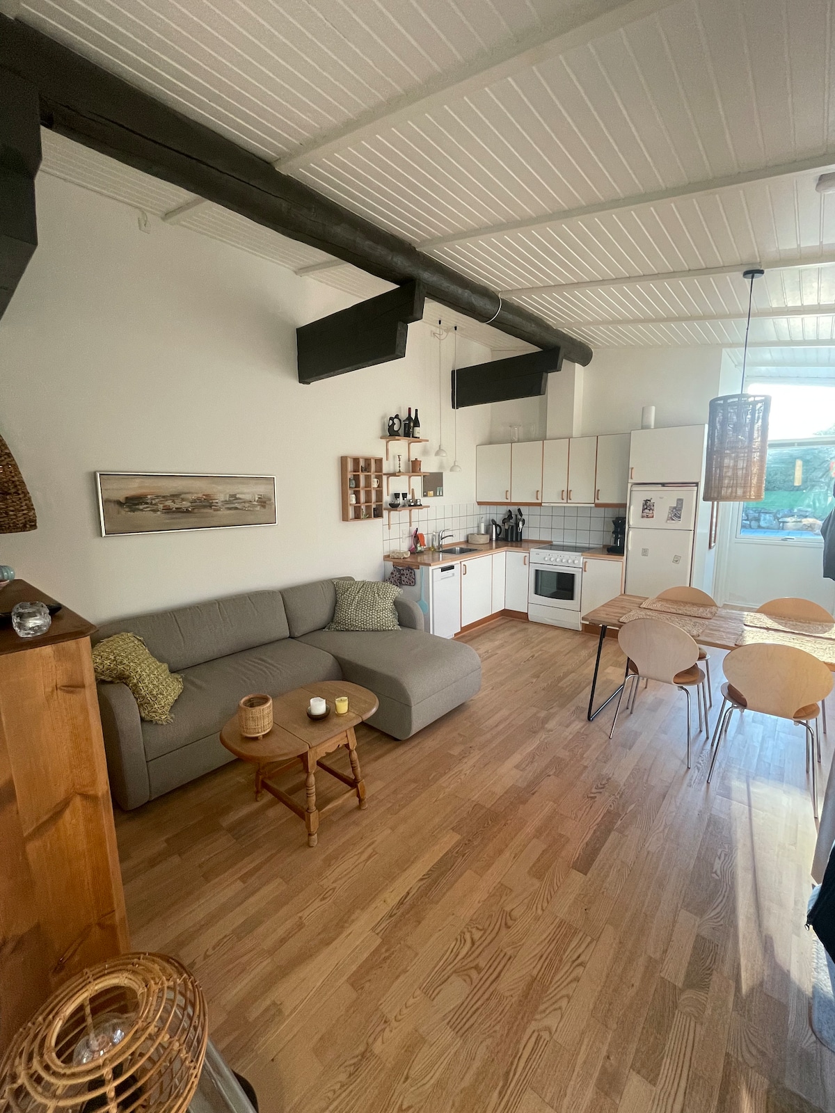 Lehne dich zurück und genieße die Ruhe – mitten in der Natur auf Bornholm. Unsere stilvolle Unterkunft auf einem 1 Hektar großen Grundstück bietet himmlische Betten für erholsamen Schlaf, eine große, voll ausgestattete, offene Küche, eine Outdoor-Feuerstelle und vieles mehr. Nur 10 Minuten von der malerischen Hauptstadt Rønne mit Hafen und 12 Minuten von traumhaften Stränden entfernt. Entdecke Bornholms Highlights wie die Burgruine Hammershus, die Rundkirchen und die charmanten Küstenorte.