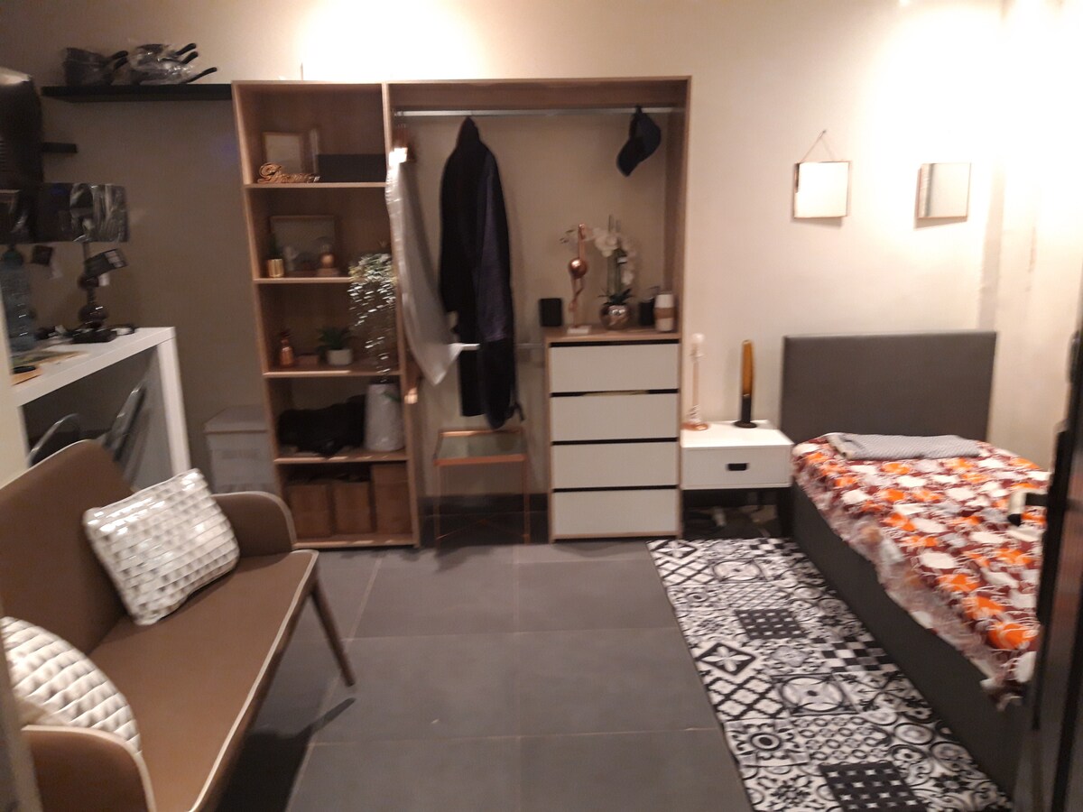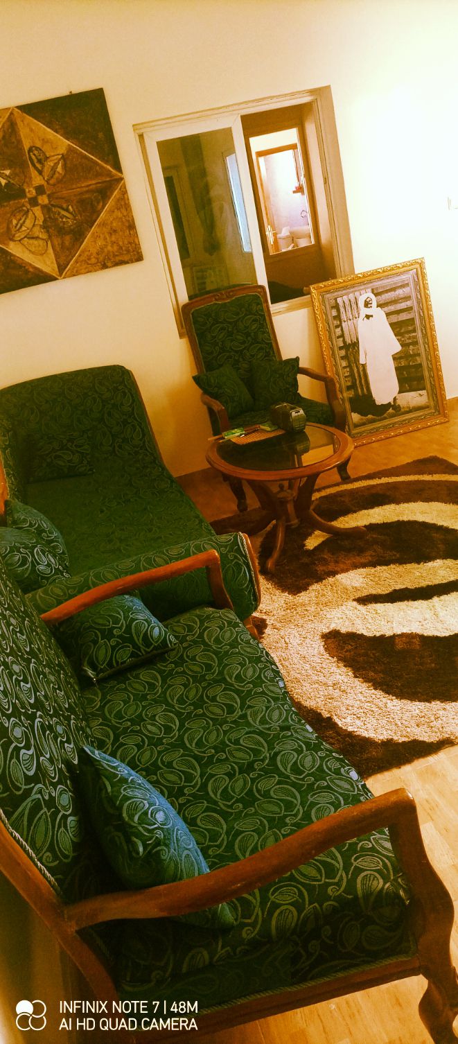 Une grande chambre avec salle d'eau et balcon, toilettes publiques, salon, 2e chambre, grand espace familial (Possibilité d'ouvrir d'autres chambres).