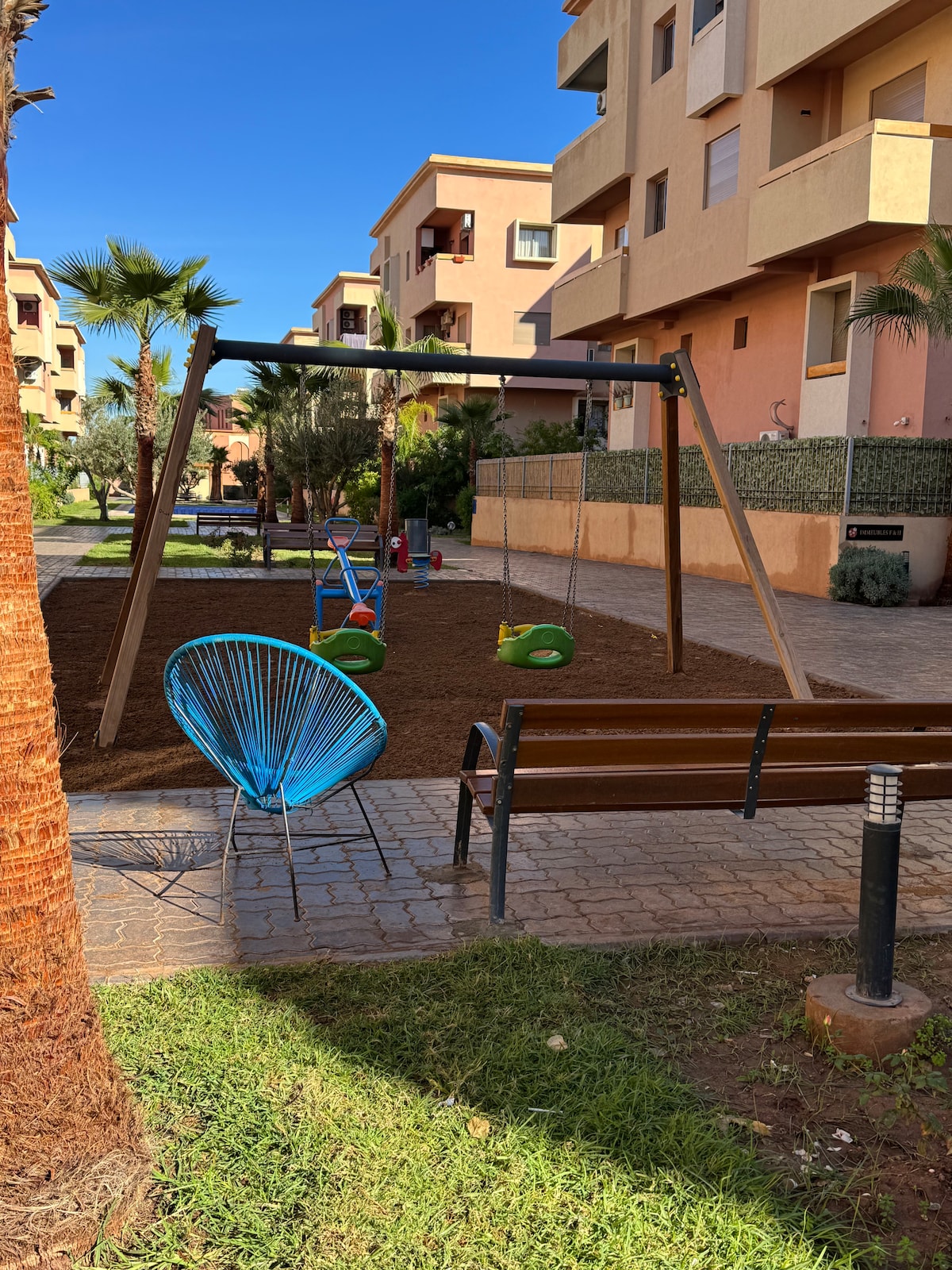 Appartement neuf avec des équipements modernes et des commodités, deux grandes piscines privées, situé dans une résidence sécurisée avec ascenseur. Vous apprécierez la proximité de la culture unique de Marrakech et, plus important encore, la possibilité de créer des souvenirs inoubliables avec vos proches. L’espace Dès que vous entrez dans cet appartement magnifiquement conçu, vous serez séduit par l’attention portée aux détails et au confort.
