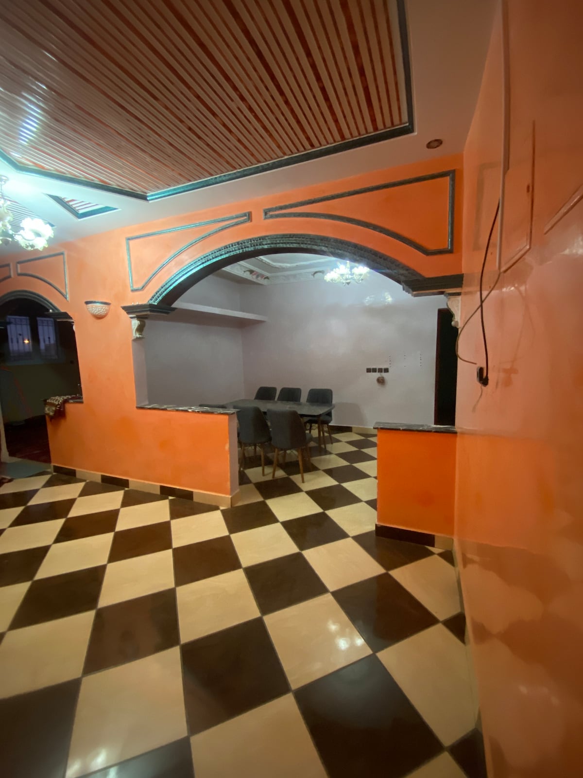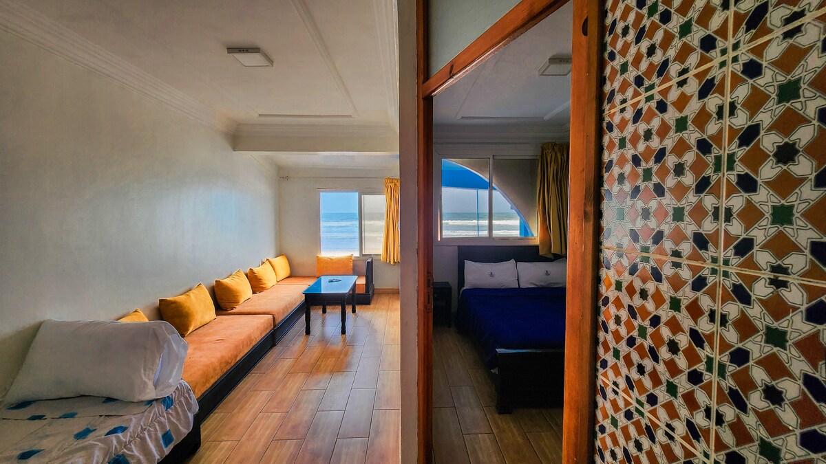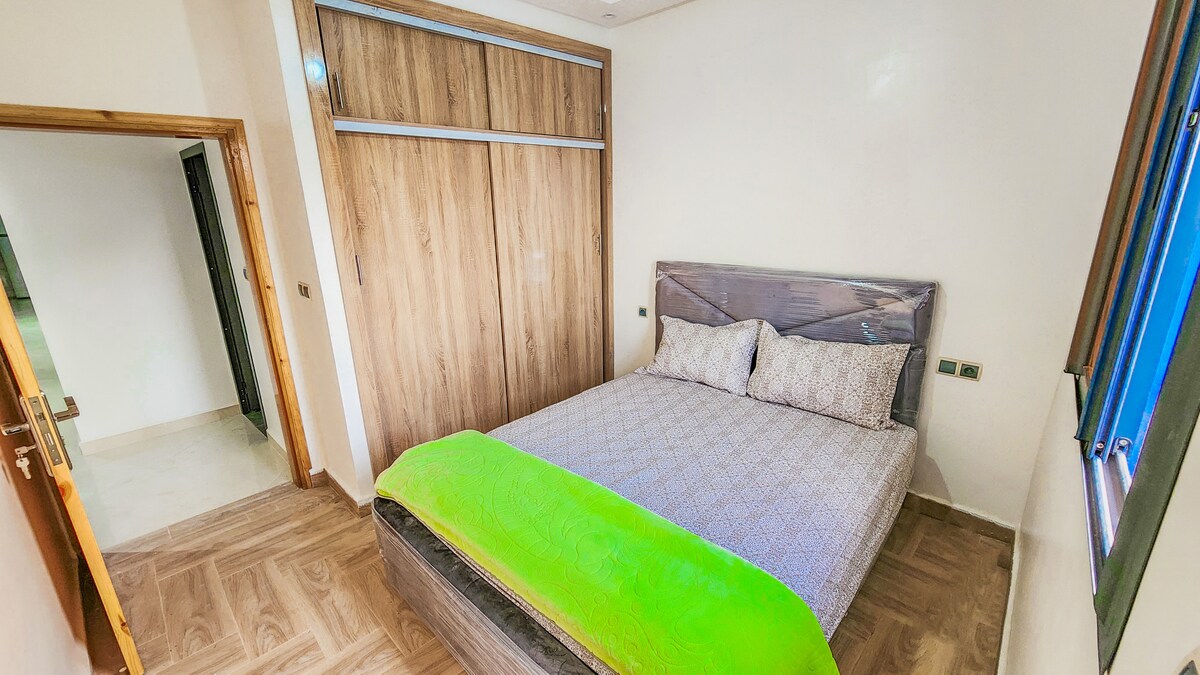 Enjoy a stylish stay stunning sea views, just 7minutes from the beach! This bright, modern appartement features 1 large bed and 2 individual beds , fast wifi ,a smart tv and fully equipped kitchen.perfect for families, friends or business travelers. Relax in a clean, cozy space with all the comforts of home.Walk to cafes , shops , and attractions.According to Moroccan law, the moroccan couples are not allowed to stay at my place