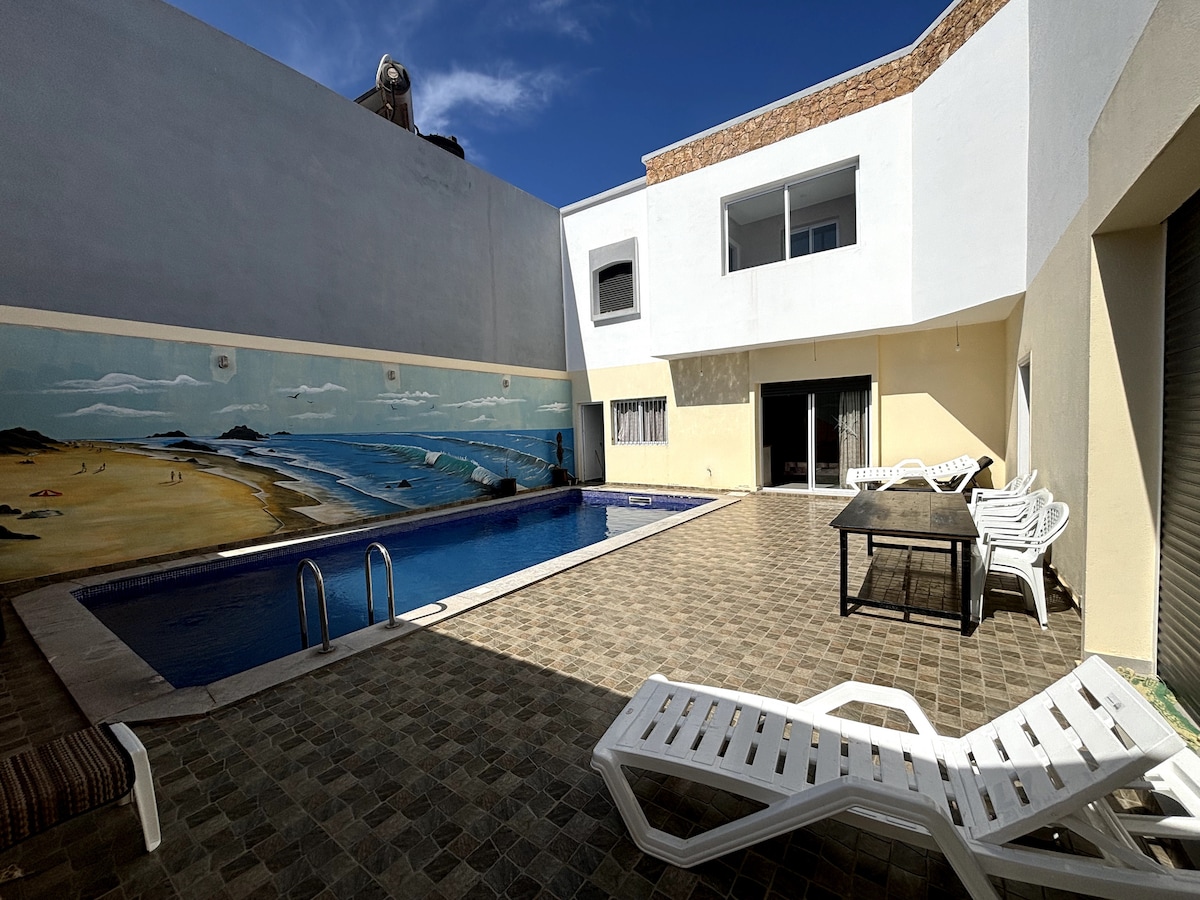 Villa moderne de 400 m2 avec piscine A 25 mn de Tiznit et 1h30 de l'aéroport d'agadir. Disposant de tout le confort nécessaire Vue sur mer avec une magnifique pergola Cuisine équipée et garage Plage à 2 min et souk à 5 min Quartier très calme Idéale pour un séjour en famille ou entre amis Le centre de Mirleft à 5 mn offre toutes les commodités (marché, épiceries, banque, pharmacie, ainsi qu'une agence de location de voitures/quad et une école de surf) Centre équestre à 15 mn