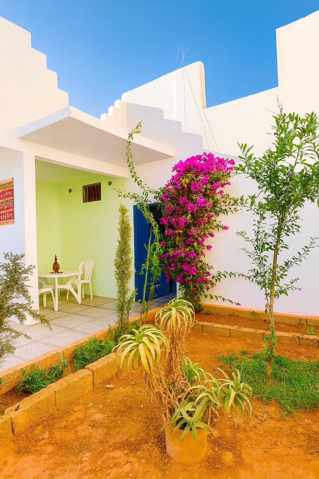 Experience Moroccan originality in a charming Beldi chic private apartment in Sidi Ifni with a splendid view, blending contemporary design and Amazigh touches. Just 5 min by car to the beach and 10 min on foot, perfect for surf and nature lovers. An ideal stay combining authenticity, comfort, and refinement. We care for our guests like top hotels: high-speed WiFi, all types of towels, cotton swabs, coffee, soap, slippers…