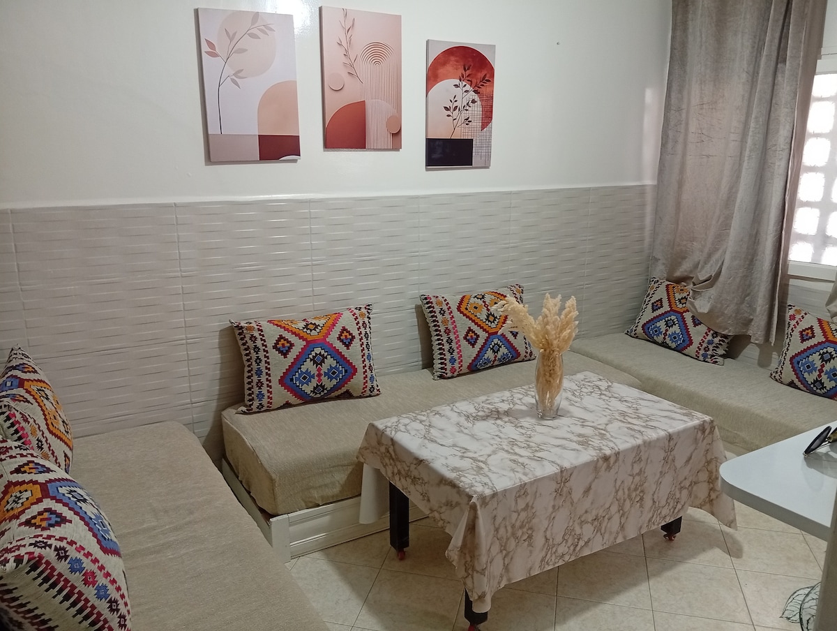 Bienvenue à Mirleft. Détendez-vous avec votre famille dans ce logement chic de 3 pièces avec un Wi-Fi fibre optique très rapide pour rester connecté pendant votre séjour. •1 lit double pour 2 personnes • 2 lits simples pour 2 personnes • 2 canapés dans le salon pour 2 personnes. Situé à 15 minutes à pied de deux des plus belles plages de Mirleft. Sur la jolie plage d'Aftas vous rencontrerez le propriétaire Zouma qui se ferra le plaisir de vous inviter à boire un thé. Eau 24h/24