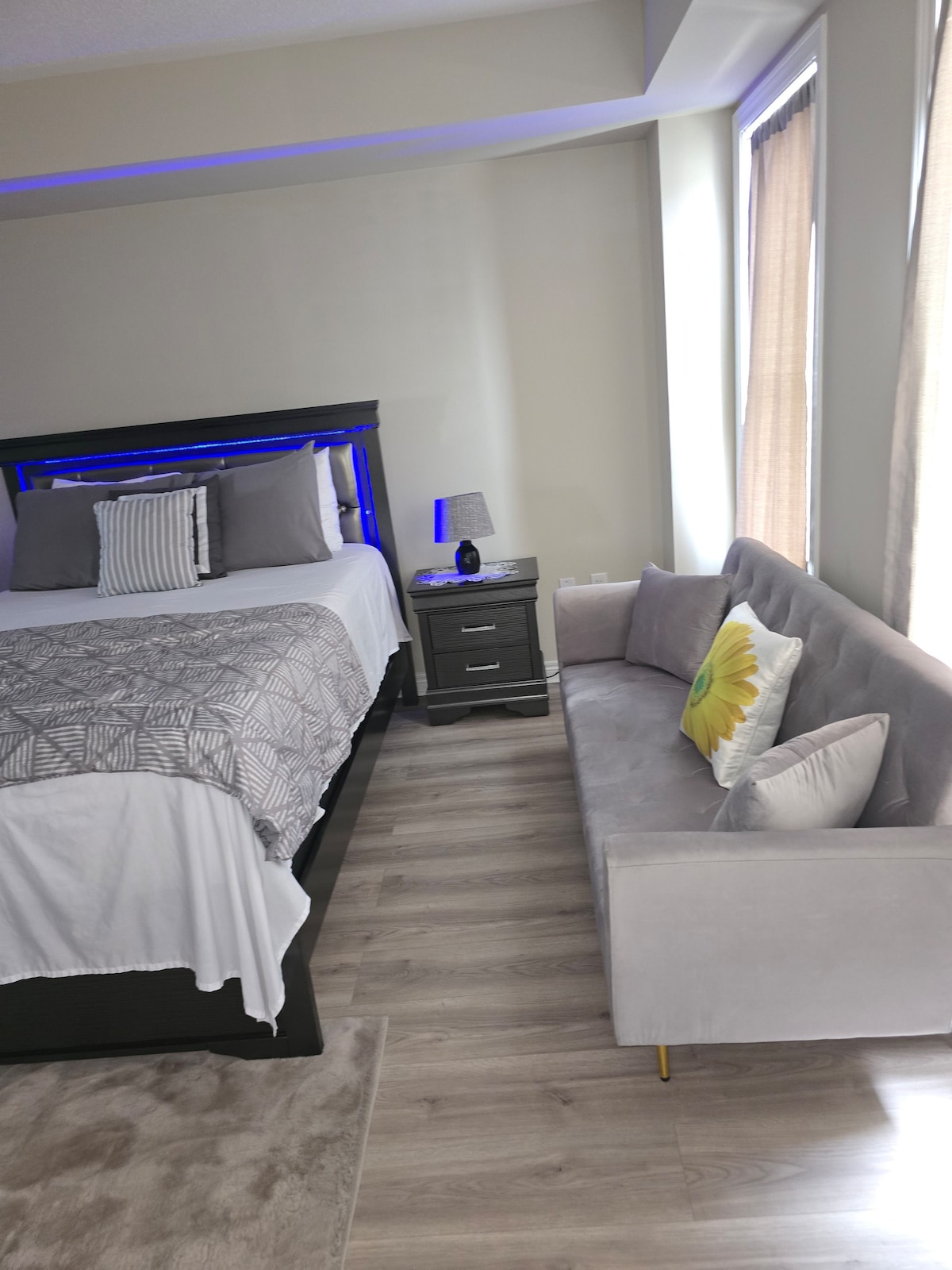 Welcome to our stylish and modern retreat, centrally located just minutes from UW, Laurier, and The Boardwalk’s shopping, dining, and amenities. Enjoy the convenience of a spacious master bedroom with a dedicated workspace, perfect for students or professionals. Experience seamless living with smart home features, including automated blinds that close 45 minutes before sunset, ensuring your privacy. Ideal for those who value comfort, luxury, and proximity to everything you need.