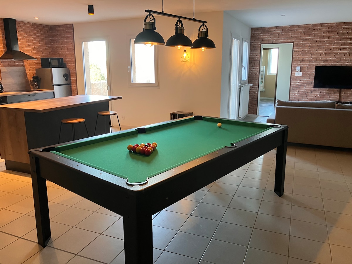 Maison spacieuse de 105 M2 sur 3 niveaux jusqu'à 6 personnes 3 chambres dont une suite parentale. les lits sont faits pour votre arrivée. Pièce de jeu avec babyfoot Cuisine ouverte . salon séjour avec TV et wifi Petit patio Parfaite pour vos vacances weekend ou séjour d'affaires situé à 7 minutes de la plage en voiture. Ce logement est proche centre ville , marché, commerce ,super marché, plusieurs parkings dont à l' arrière de la maison
