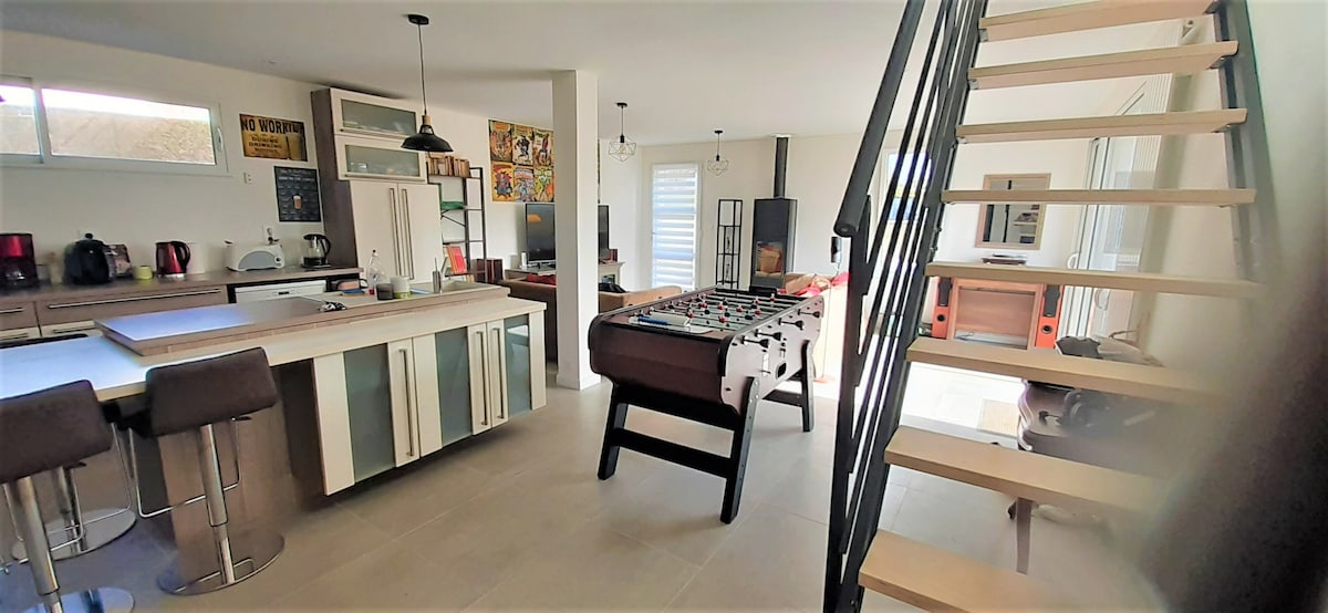 Bonjour nous louons notre maison pendant les vacances scolaires et certains week-ends ! Maison située entre Saint Nazaire & Pornic À 1km de la Mer. Tout à 10/15 min ( Pornichet/ Tharon Plage/ Pornic…) Capacité de 6- 8 personnes, 3 chambres. Maison incluant jeux divers, grand jeux extérieur pour enfants, maison tout équipé Chalet extérieur comprenant côté sport + Douche hydromassante + Sauna & Jacuzzi Attention prix variables selon la saison. Melanie & Ludovic
