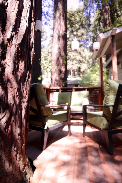 红杉林山坡上的度假屋,带热水浴缸