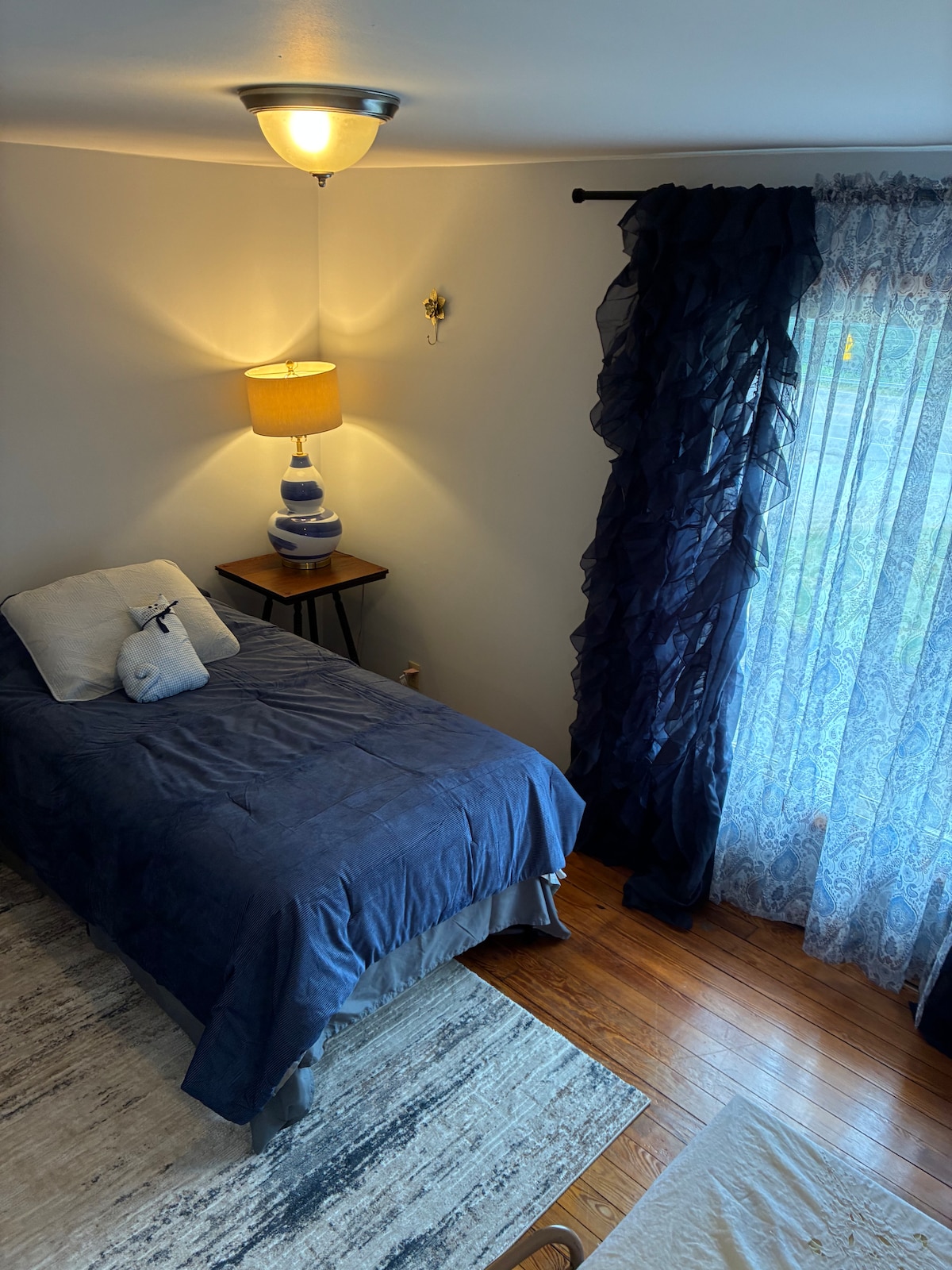 This is a cozy studio concrete “bunker” house across the driveway from our residence. the Bunker has a private patio with a hot tub. It is located on an idyllic 35 acre property with two ponds that connects to Salt Fork State Park public land. We are located a few miles from the State Park entrance and Deerassic Park and close to I77 and I70.