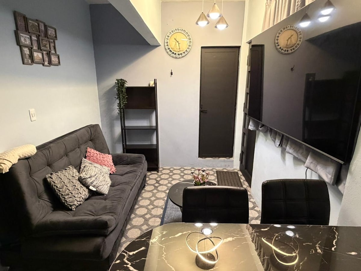 Departamento con gran comodidad, espacio y seguridad, cuenta con circuito cerrado, puerta de entrada principal automática, alarma contra robo, monóxido de carbón e incendio, excelente calidad de internet y Smart Tv. Cuenta con sistema de iluminación con 3 tonalidades: Luz blanca, semicálida y cálida, apta para el estudio y el descanso. Las escaleras centrales cuentan con pasa manos, antiderrapante, iluminación con sensor. Cocina y baño equipados. Ubicación practica con servicios disponibles.