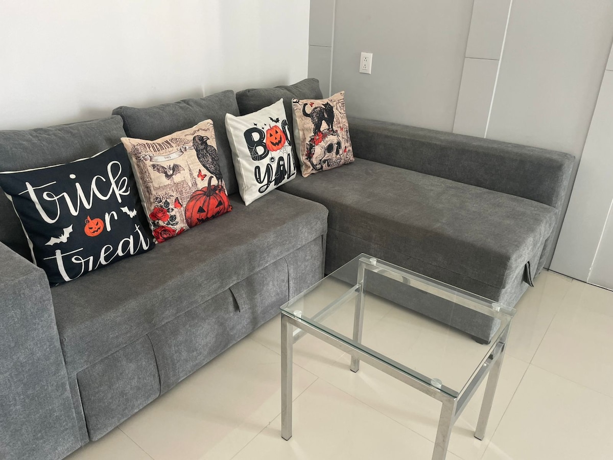 Beautiful condo by the ocean shore, full of natural light and great ventilation. Located in the 7th floor of the building the ocean and mountain views are unbeatable. 5 minutes walking distance from the main restaurants and stores. The building has three pools, a kids pool, an adults only pool and a family pool, gym, one padel court and a pickle ball one, snack-bar, resting areas, beach shore, etc.You will feel at home, as the condo has everything that you might need to enjoy your stay.