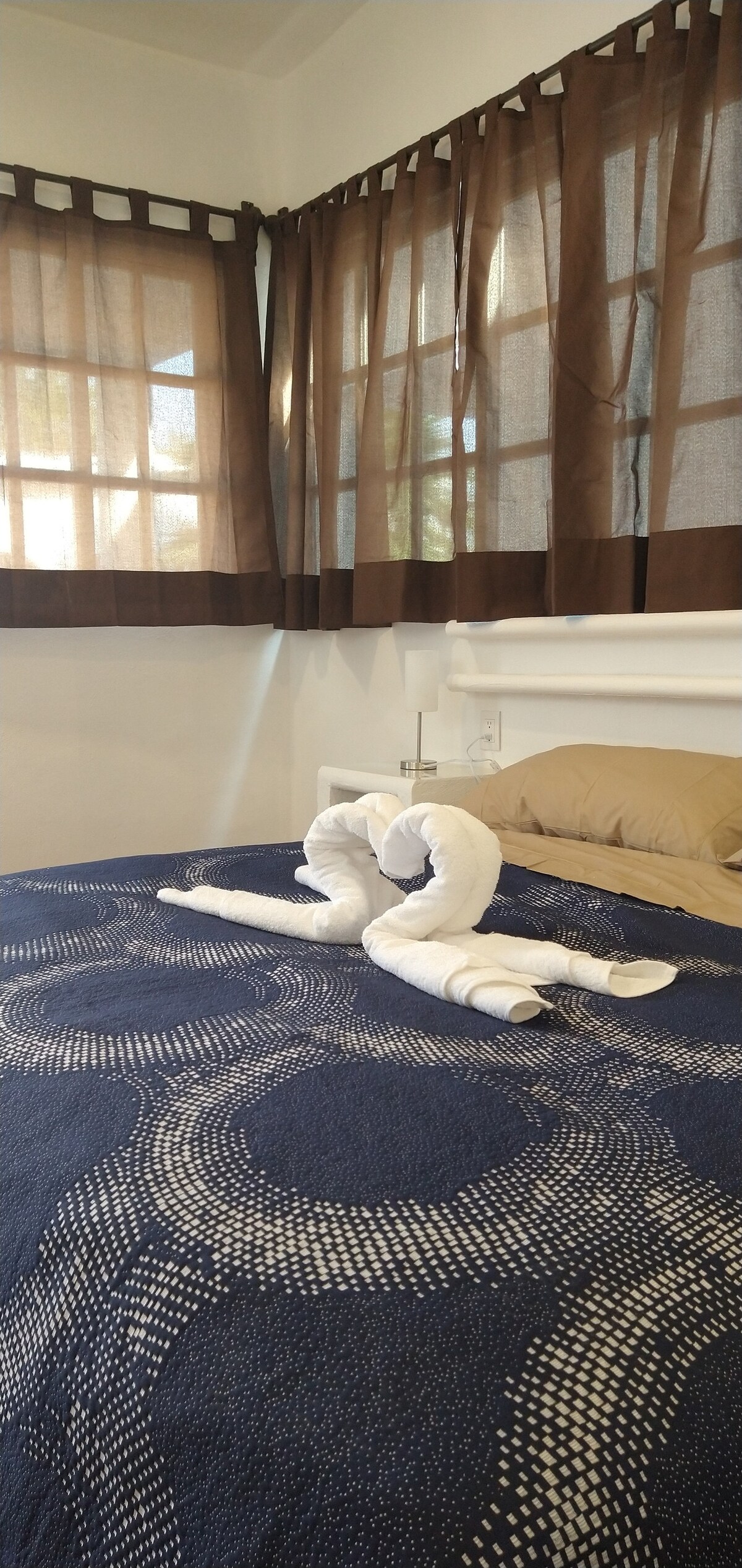 Sanka’s Casita is part of the 3 unit Bear Naked Bungalows property. It’s a 750 square foot, 2 bedroom, 2 bath unit on the ground floor. The main bedroom includes a king size bed with en suite bathroom. The second bedroom has a queen size bed. Both bedrooms have A/C units and pool and mountain views. The living space is an open floor plan with a kitchen. Located only a two minute walk to the beach and a five minute walk to Centro.