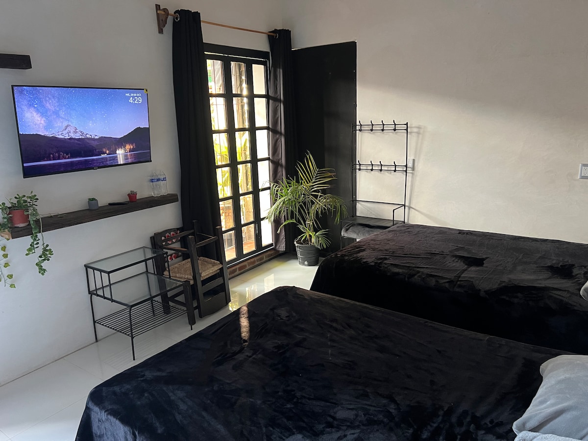 Espacio de dos habitaciones con aire acondicionado cada una, que comparten una cocineta y un baño grande. CUANDO RENTAS PARA 1 o 2 PERSONAS EL COSTO ES MUY BAJO Y SÓLO SE RENTA 1 HABITACIÓN, LA OTRA PERMANECE CERRADA. Mínimo 3 personas para hacer uso de ambas habitaciones. Contacta al anfitrión para más información. LAS ÁREAS COMUNES SE COMPARTEN CON OTRAS 3 CASAS dentro del mismo terreno. Playa a 1 minuto caminando. LA TARIFA CAMBIA CON LA CANTIDAD DE HUÉSPEDES.