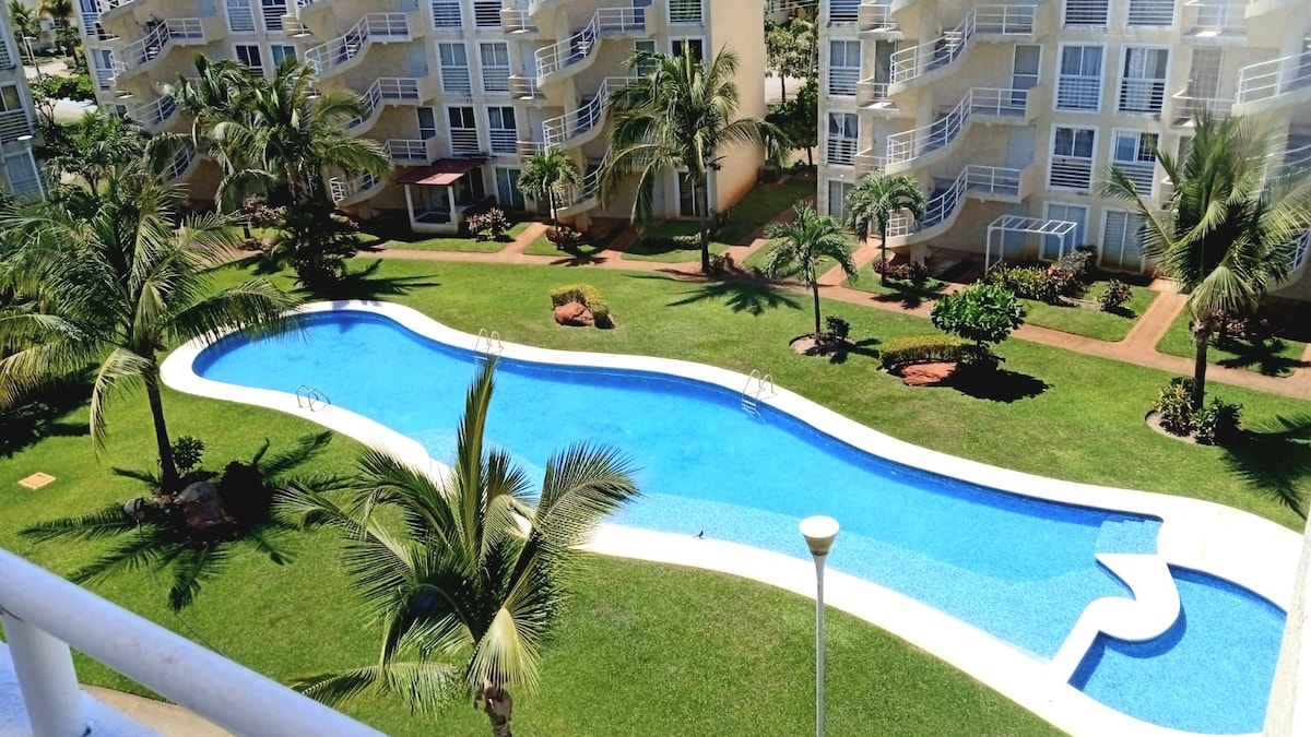 Departamento al 100% y condiciones para recibirte en tus próximas vacaciones. Ven a disfrutar en Acapulco Diamante, ubicado a sólo 10 min del aeropuerto y a 5 min del Centro Comercial "La Isla" y del entronque con la autopista diamante. Contamos con estacionamiento, alberca con jacuzzis funcionando al 100%, seguridad las 24 hrs, ambiente totalmente familiar, hermosos andadores para dar un paseo matutino,. Casa Club y Club de Playa aún en reconstrucción a causa del huracán Otis.