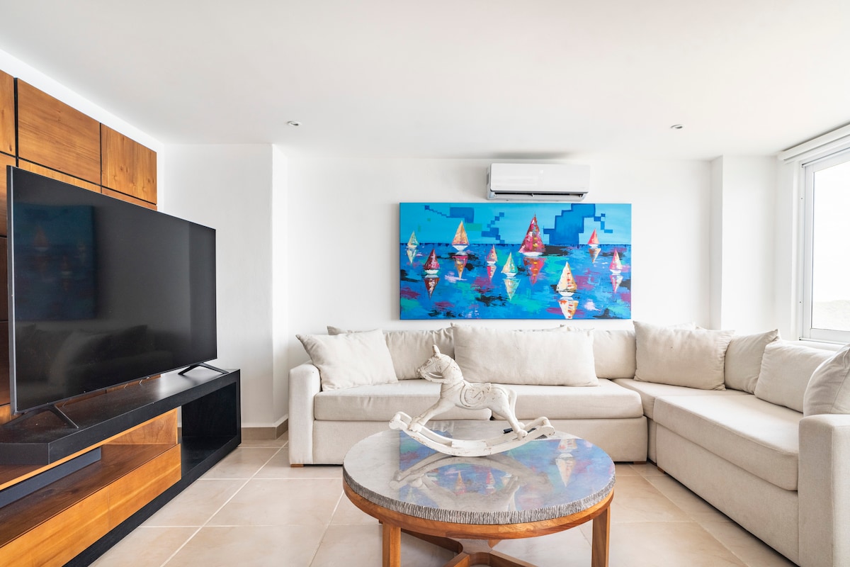 Cómodo y bien decorado departamento en Planta Baja en área muy privada y tranquila, cerca de la piscina pero lejos del ruido y transito de otros huéspedes ideal para familias con adultos mayores y niños ! El bar de las albercas es muy accesible ! Cuenta con vigilancia las 24 horas ! Muy cerca de la Isla y del aeropuerto ! La admon pide un deposito de 3000 pesos 100% re-embolsable al salir ! PODEMOS FACTURAR !