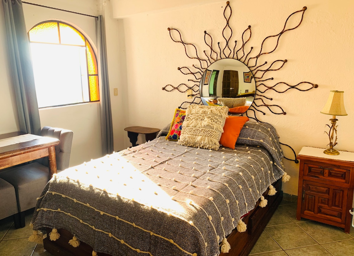 En el centro histórico, alojamiento tranquilo en el primer cuadro de la ciudad, ideal para tener un buen descanso, deleitate de los coloridos amaneceres que brinda la hermosa vista hacia las montañas, alrededor de iglesias emblemáticas de nuestra ciudad, parques, tiendas artesanales, platerías, museos, mercado y una variedad de restaurantes sin tener que llevar tu auto para disfrutar de una caminata conociendo lindos callejones, siéntete en casa.