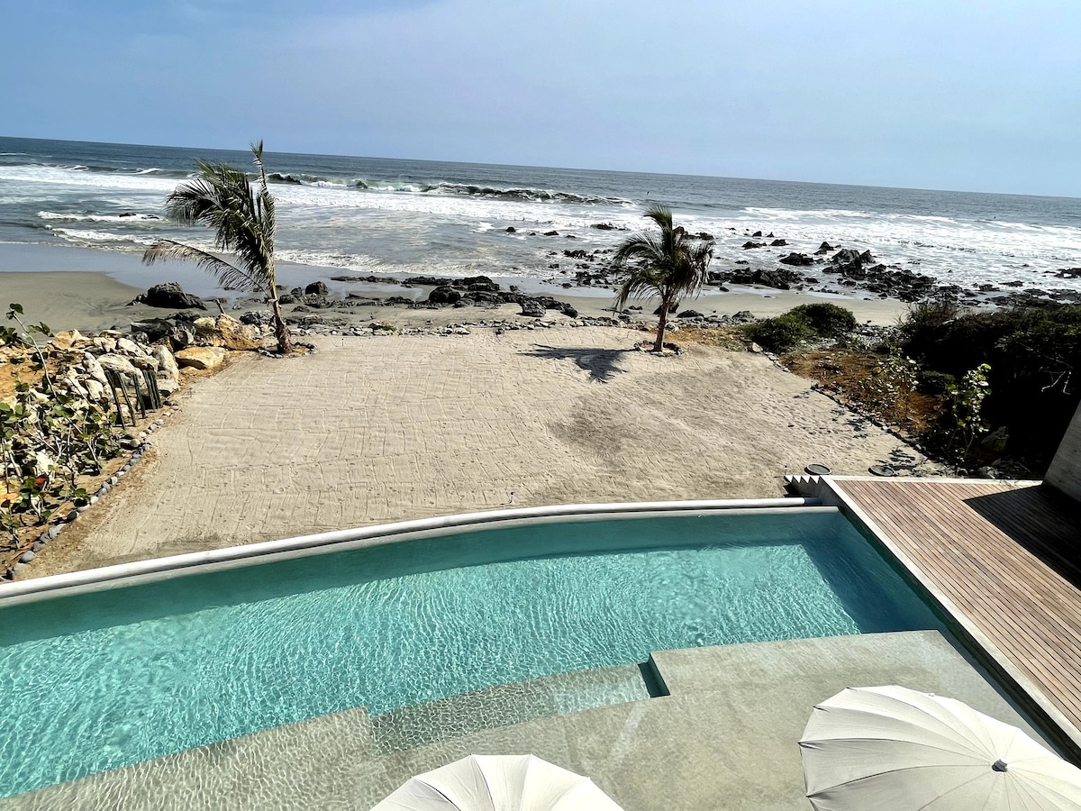 Hermosa casa minimalista frente al mar. Alberca y playa privada. Dos habitaciones en el primer piso y un bungalow privado de grandes dimensiones en la planta baja. Cada una cuenta con baño propio, una cama king size y cómodos sofás cama individuales. Las habitaciones de arriba tienen terraza con hamaca y el bungalow cuenta con deck con tumbonas propio. Las 3 habitaciones tienen aire acondicionado y baño privado con vista al mar.