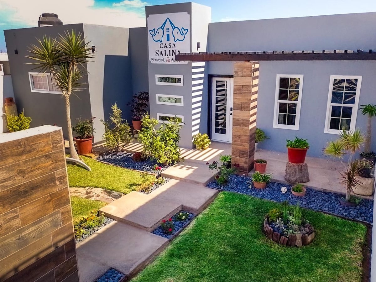 Acogedora casa para 4 personas en la Capital Mundial de la Ballena Gris. * 2 Recamaras * 1 baño * Cocina equipada + Smart TV + WIFI de Alta Velocidad * Aire Acondicionado Inverter (frio/calor) y ventiladores de techo * Patio privado con asador, fiire pit y estacionamiento seguro (acceso con portón eléctrico) Ubicado a mitad de camino entre Tijuana y La Paz, perfecta para viajeros recorriendo Baja California . Confort de ciudad en la tranquilidad de Guerrero Negro.