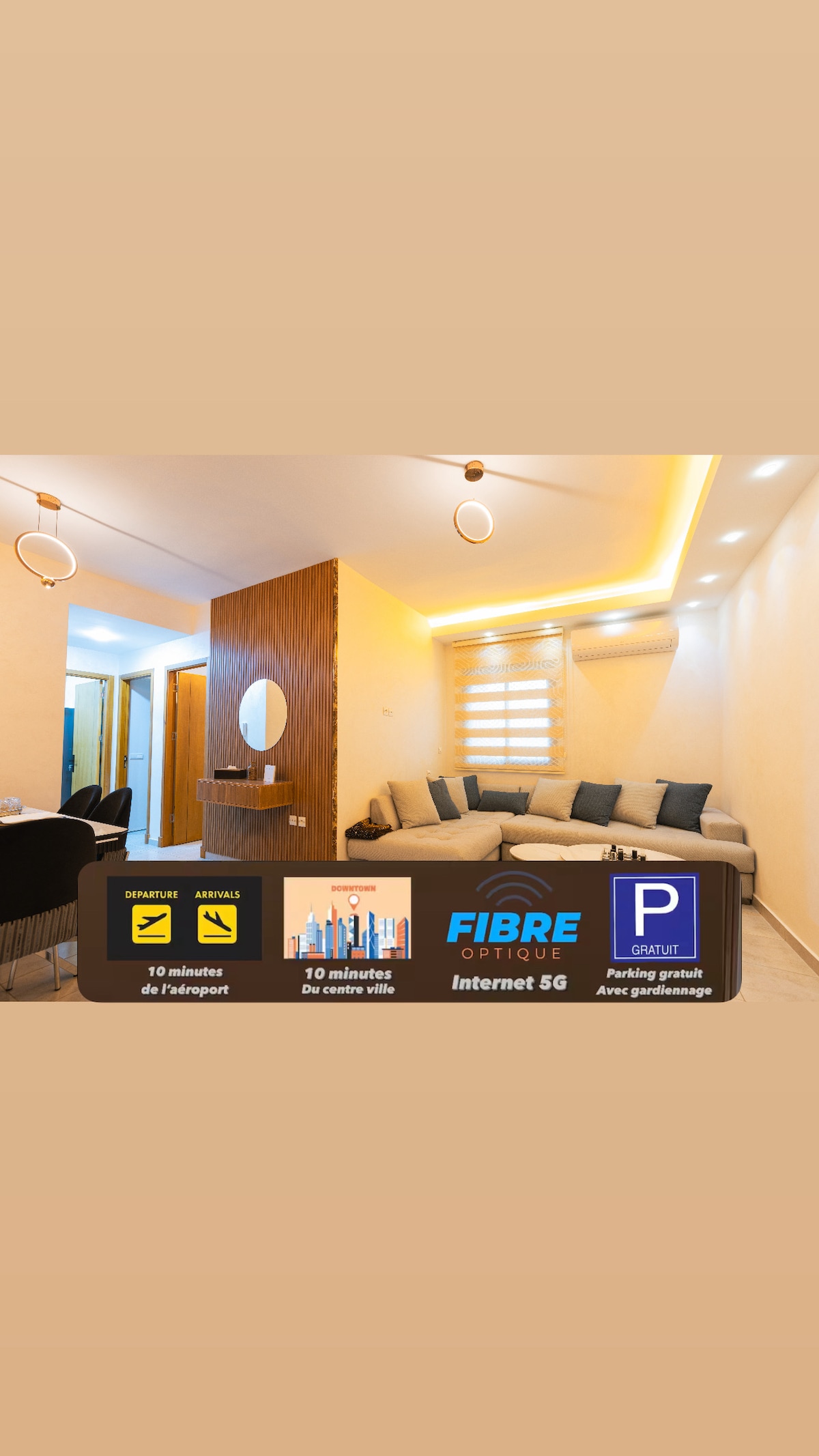 PLEASE READ BEFORE BOOKING The apartment is newly renovated Location -5 min from McDonalds & Marjane -10 min from the airport -15 min from the beach and centre ville Apartment: -First floor,no elevator, free street parking -Master bedroom, wall-mounted flat screen -Second bedroom with 2 beds -Bathroom with bidet, soap, gel, toilet -Fully equipped kitchen, washing machine -Modern living room, Nilesat, dining table for 4 -Hot water -Secure, quiet neighborhood -convenience store nearby