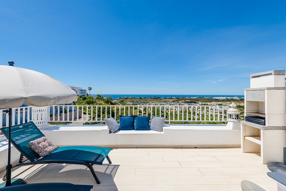 Bright spacious 2 bedroom apartment with beautiful sea views in the heart of Carvoeiro. Beach at 150 meter and shops, restaurants at the same distance. Decorated with modern furniture and linens, this place has it all! Two good size bathrooms for your comfort. Kitchen is fully equipped and all rooms do have air-conditioning. A great balcony to enjoy the view from morning till evening.The large round table let you enjoy breakfast, lunch or dinners outside. Included a Weber BBQ.