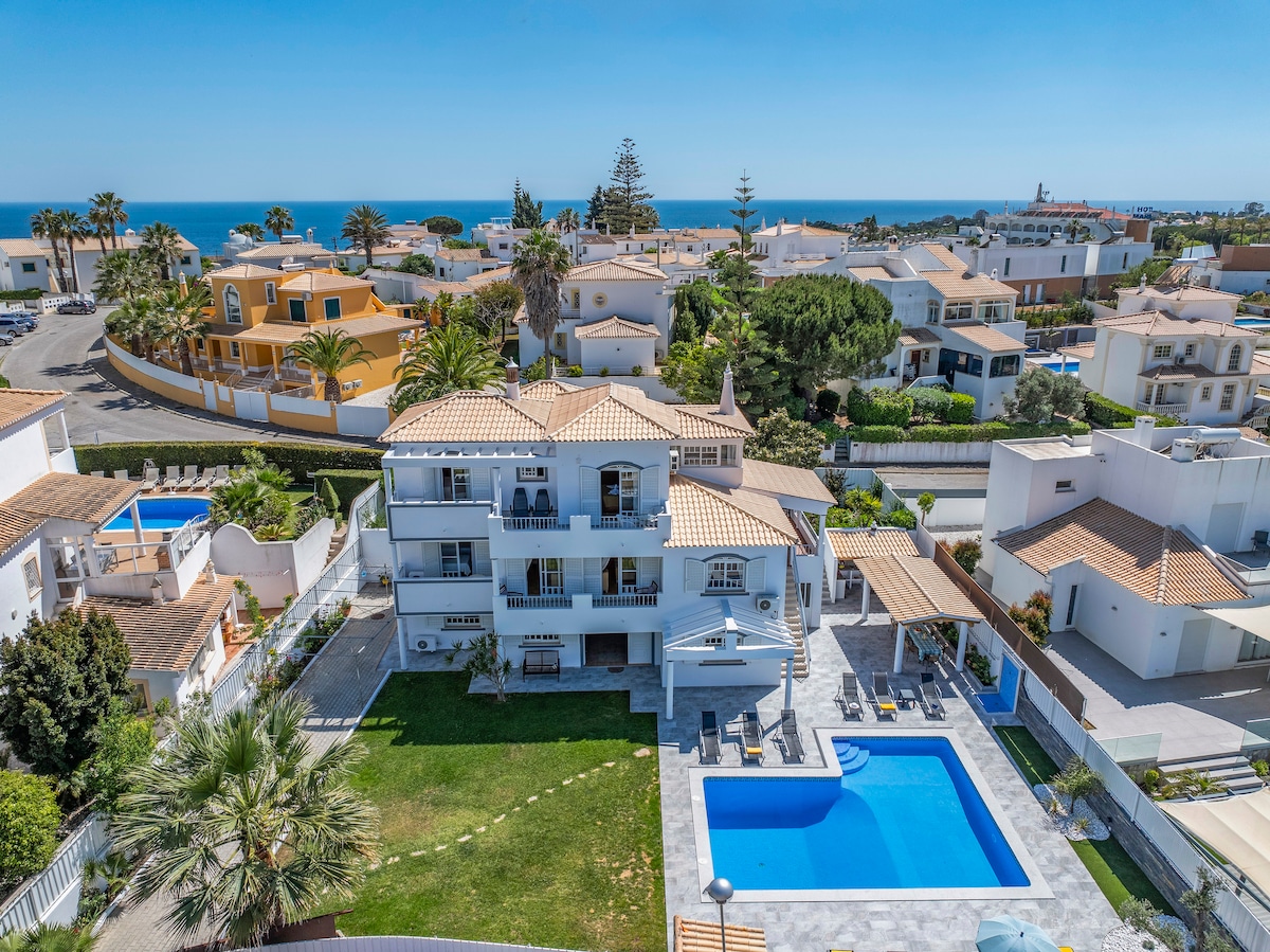 Our beautiful, fully air conditioned 4 bed villa with gardens, pool & BBQ is situated in Vale de Para just 1.8km from the Blue Flag beaches of Galé’ with an olive grove to one side and vineyards to the other yet nearby there are numerous fine restaurants, shops and supermarkets within walking distance. The old town of Albufeira just a 10 min drive away. Also nearby is Algarve Shopping mall (superstore & cinema ) is just 6km, and the Golf course of Salgados. Maid service &Pool heat are available