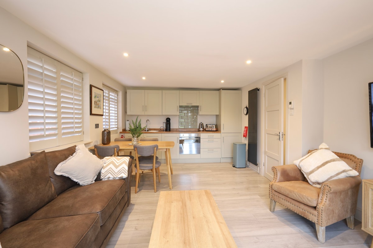 BRAND NEW, bijou, one-bedroom guest annex comprising cosy bedroom, ensuite, kitchen/sitting room & roof terrace. A short walk to the centre of the ancient market town of Godalming, featured in the film “The Holiday”, with an abundance of cafés, restaurants, pubs & beautiful countryside walks along the River Wey. A short drive to numerous National Trust estates & Surrey wedding venues. A 12 minute walk to Godalming station, with frequent trains into London Waterloo taking approx 45 minutes.